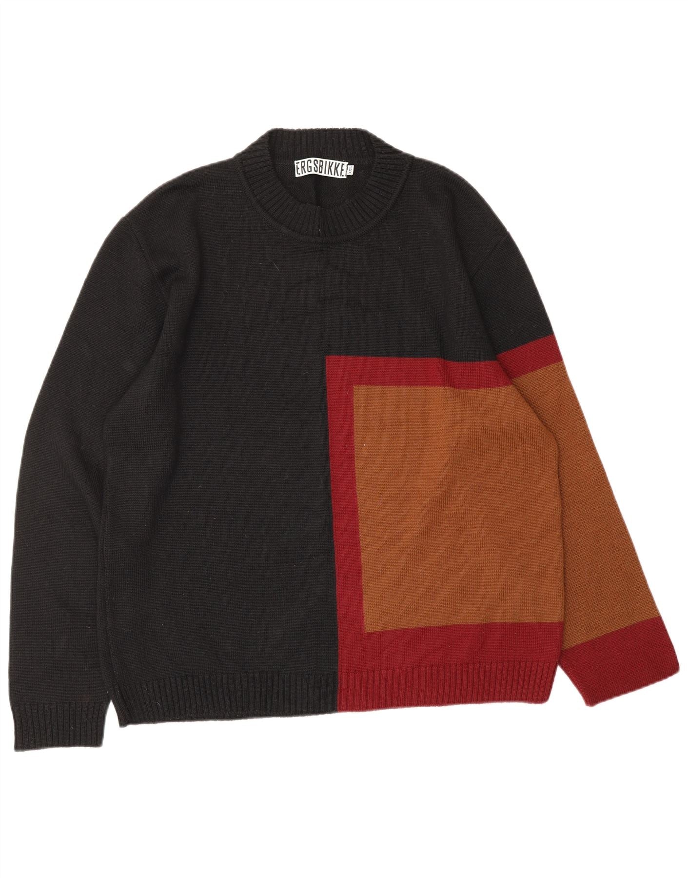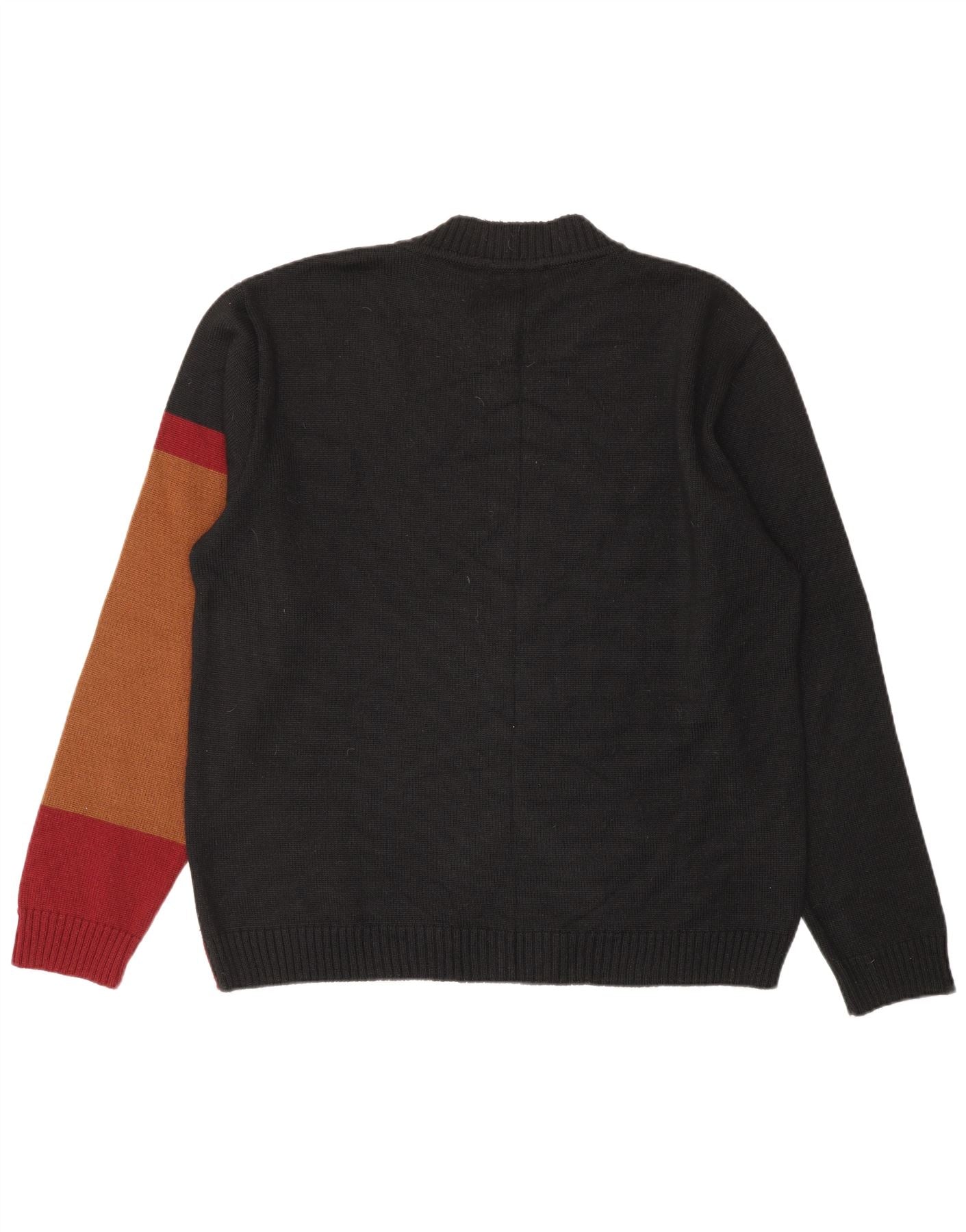 - AI Description: This Vintage mens Crew Neck Jumper Sweater is crafted from a soft acrylic knit, offering warmth and comfort. It features a striking multicoloured colourblock design with an abstract pattern. The classic crew neck and long sleeves provide a timeless silhouette. Its pullover style ensures easy wear. A regular fit offers comfortable wear, blending modern style with everyday practicality.