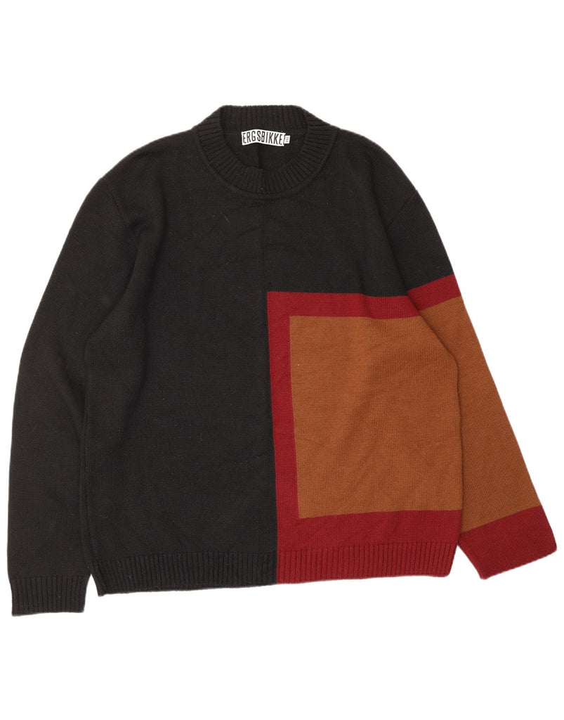 BIKKEMBERGS Mens Crew Neck Jumper Sweater 2XL Black Colourblock Wool