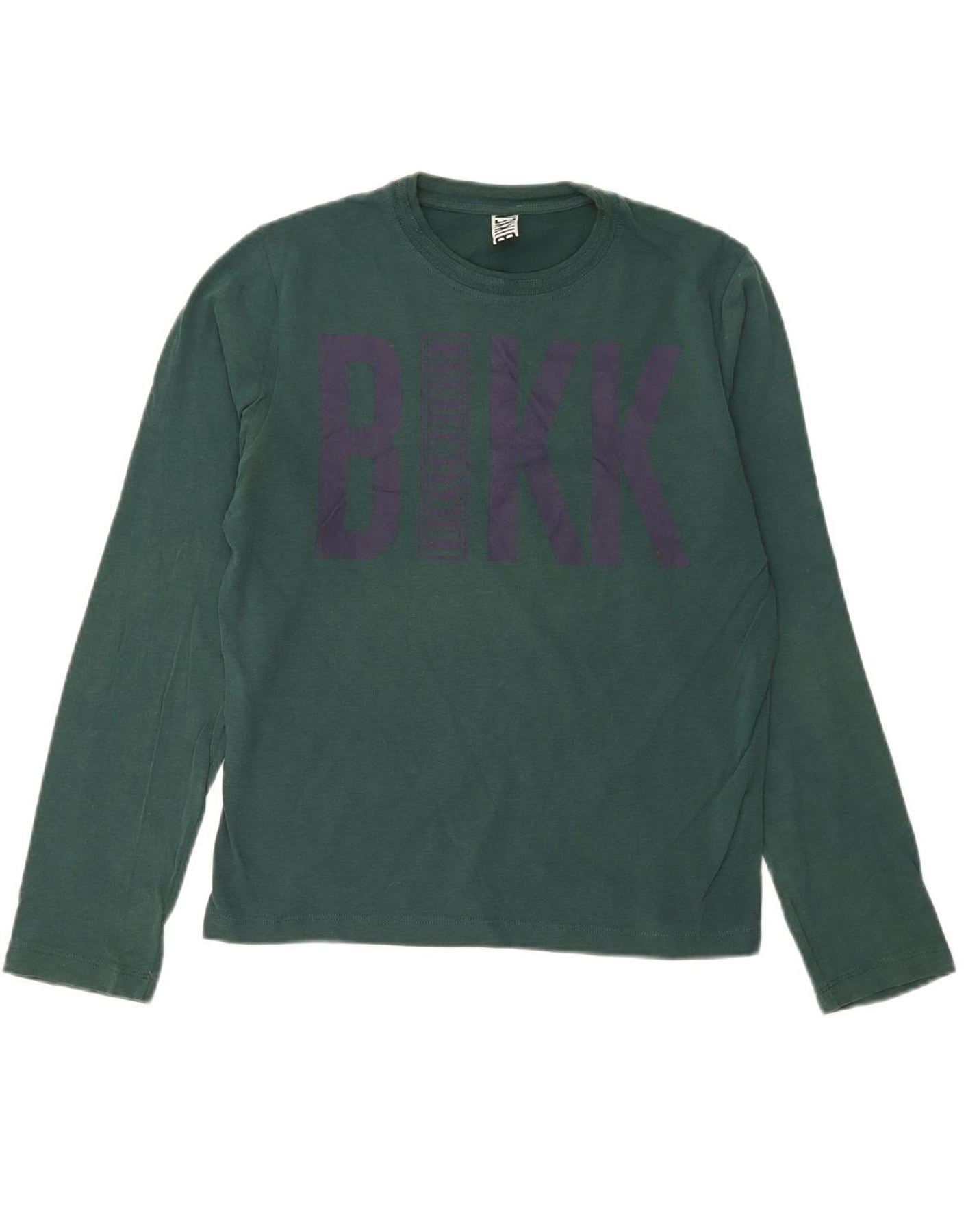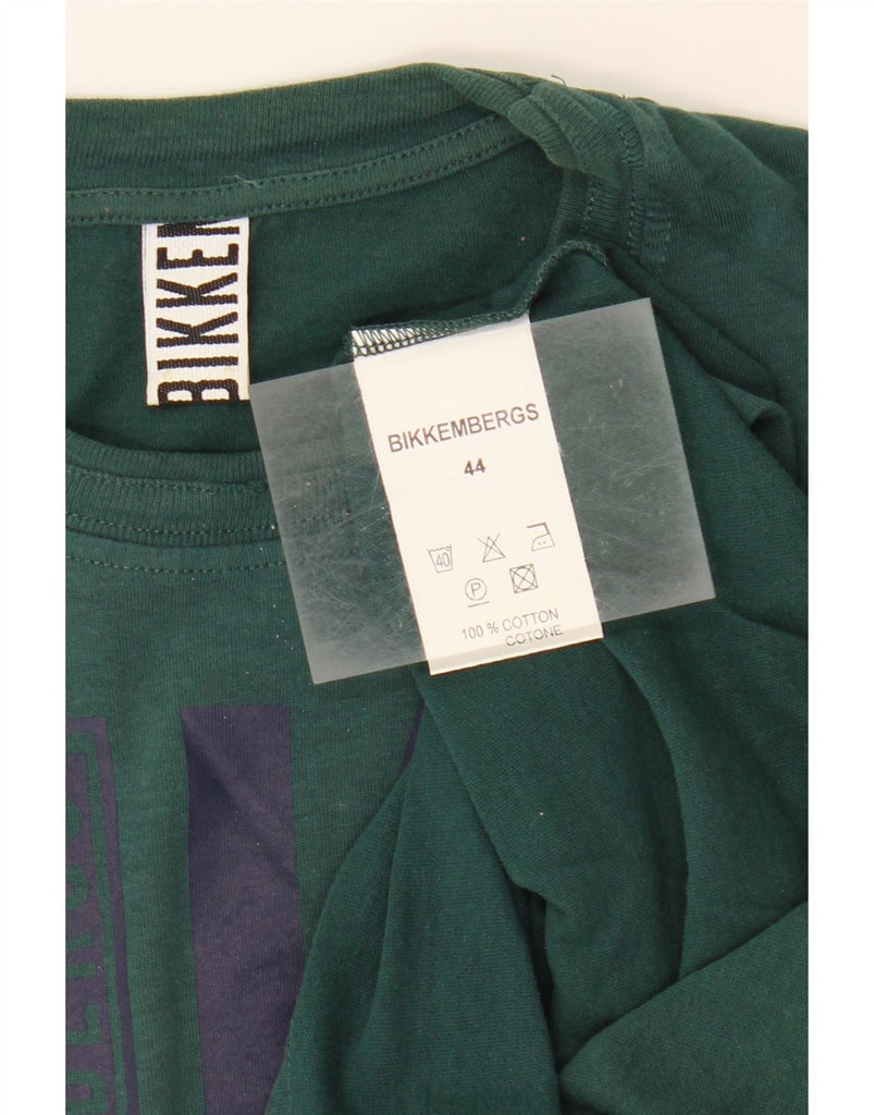 BIKKEMBERGS Womens Graphic Top Long Sleeve IT 44 Medium Green Cotton