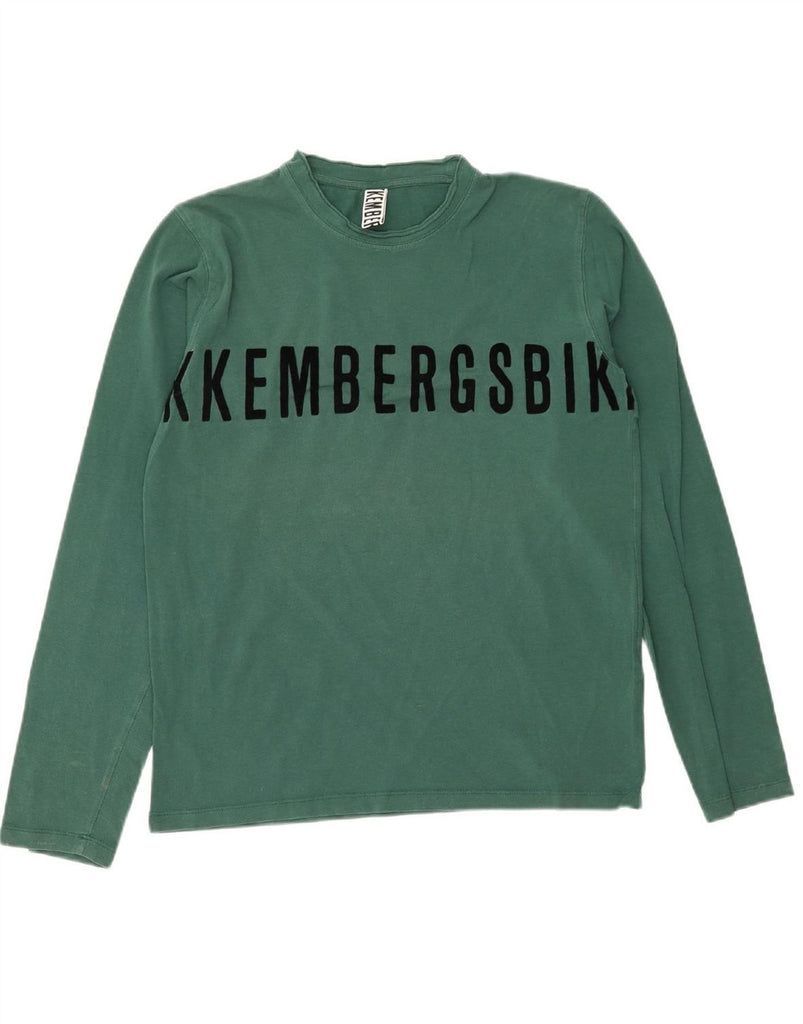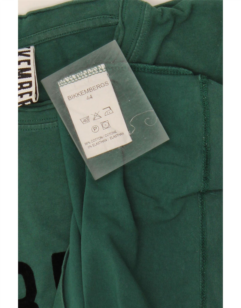 BIKKEMBERGS Womens Graphic Top Long Sleeve IT 44 Medium Green Cotton