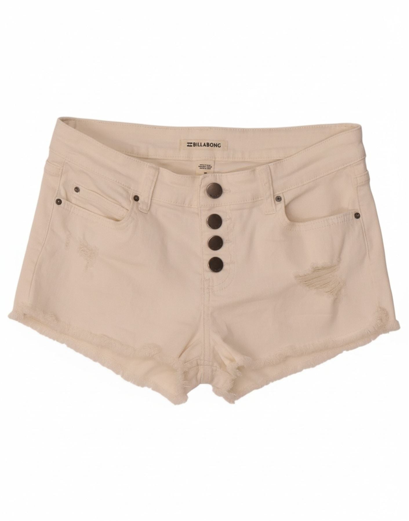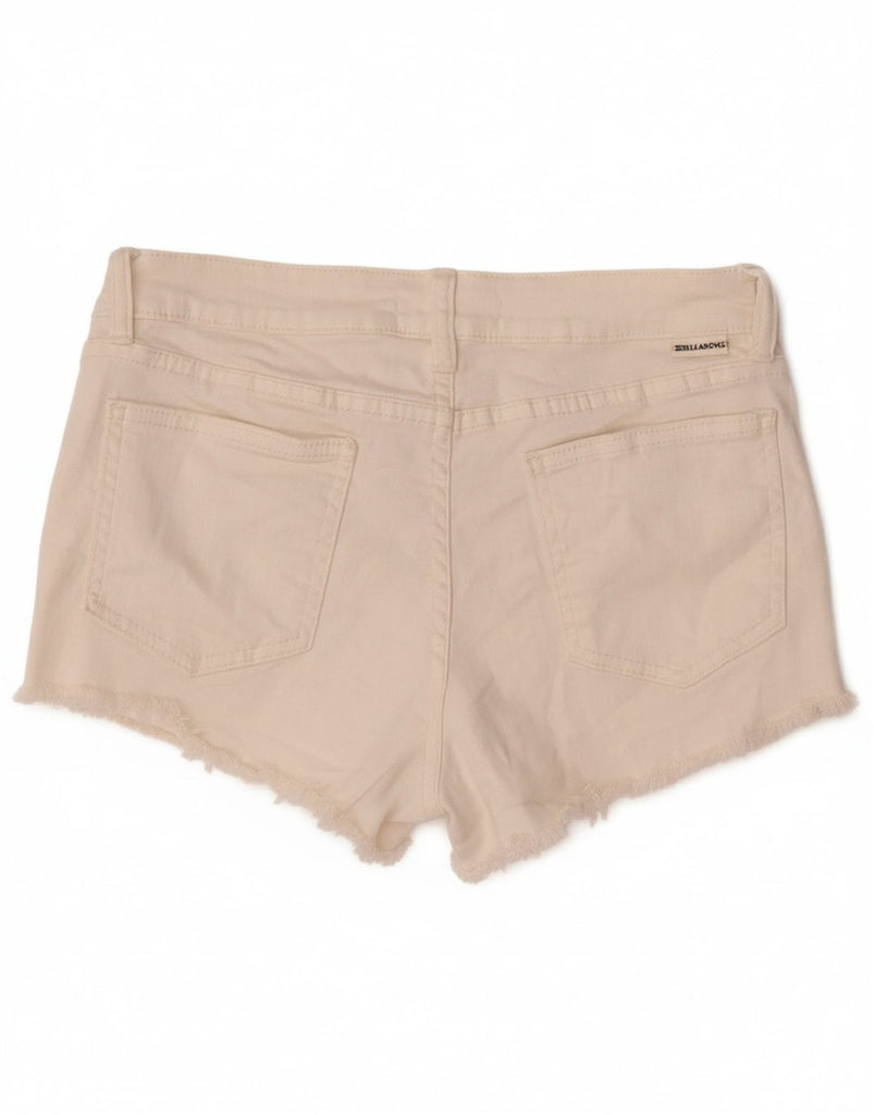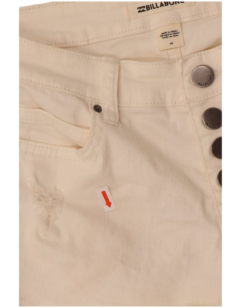 BILLABONG Womens Distressed Denim Hot Pants W26 Small Off White Cotton