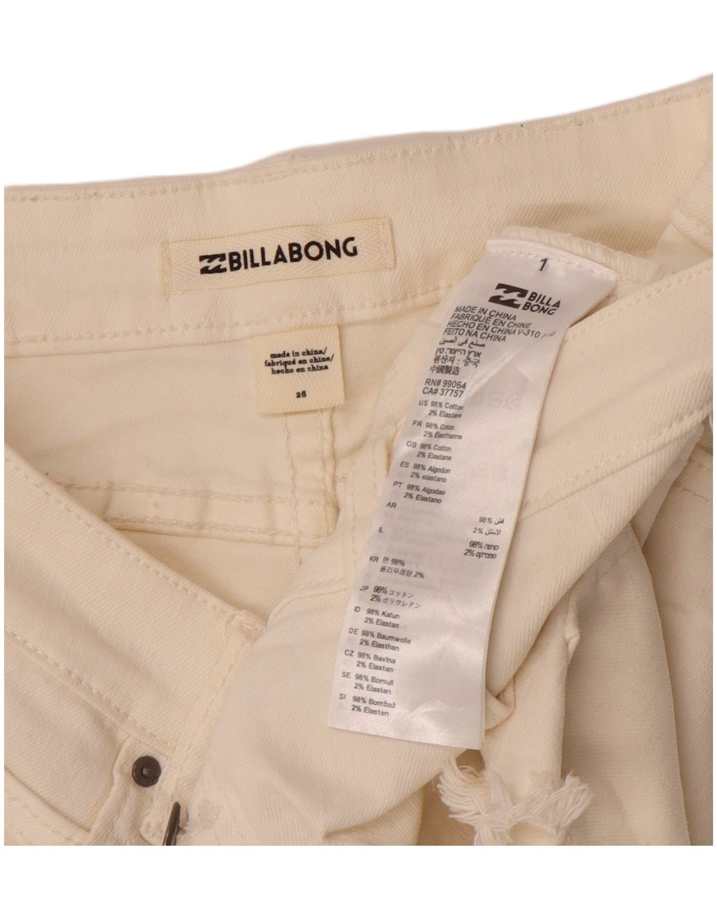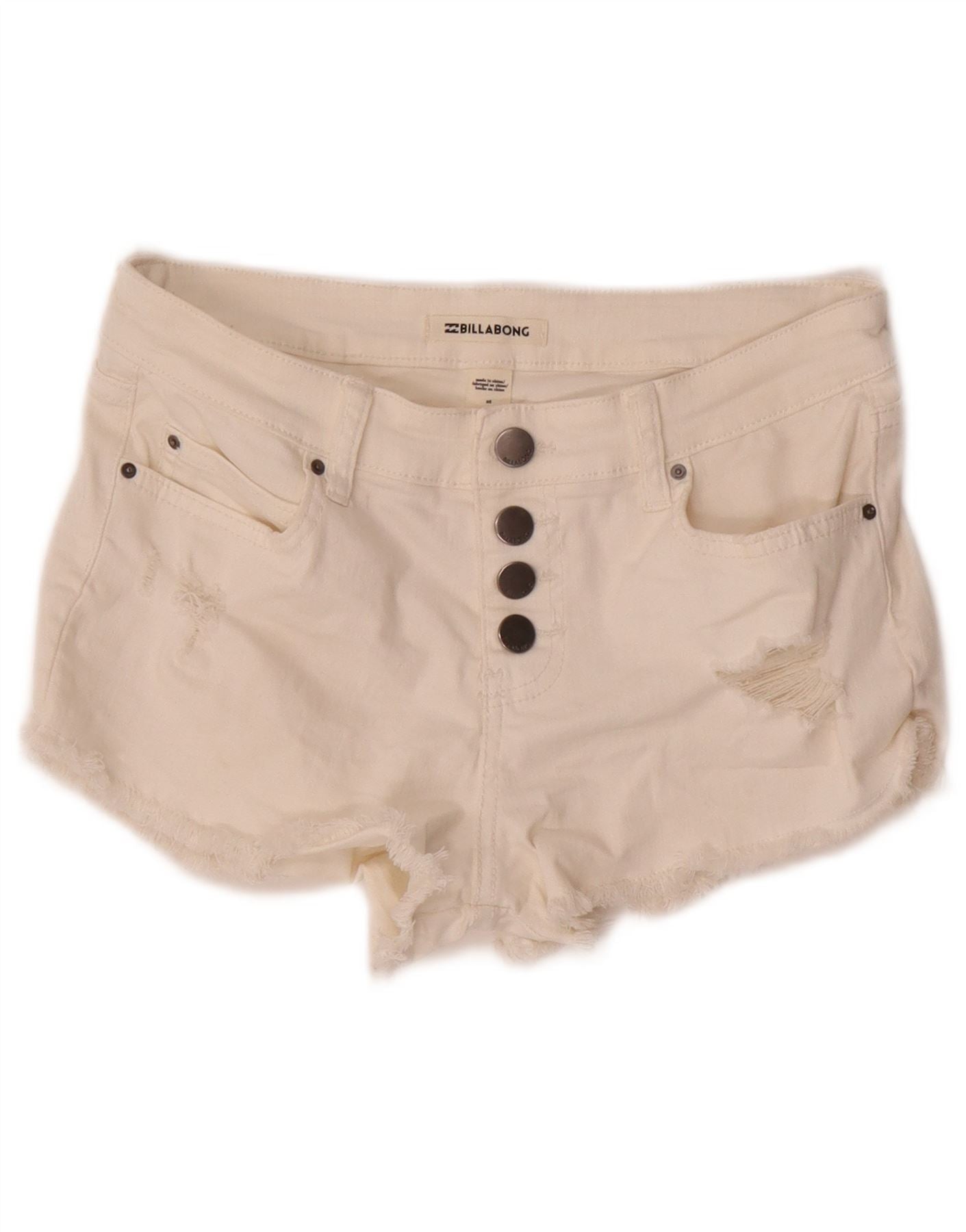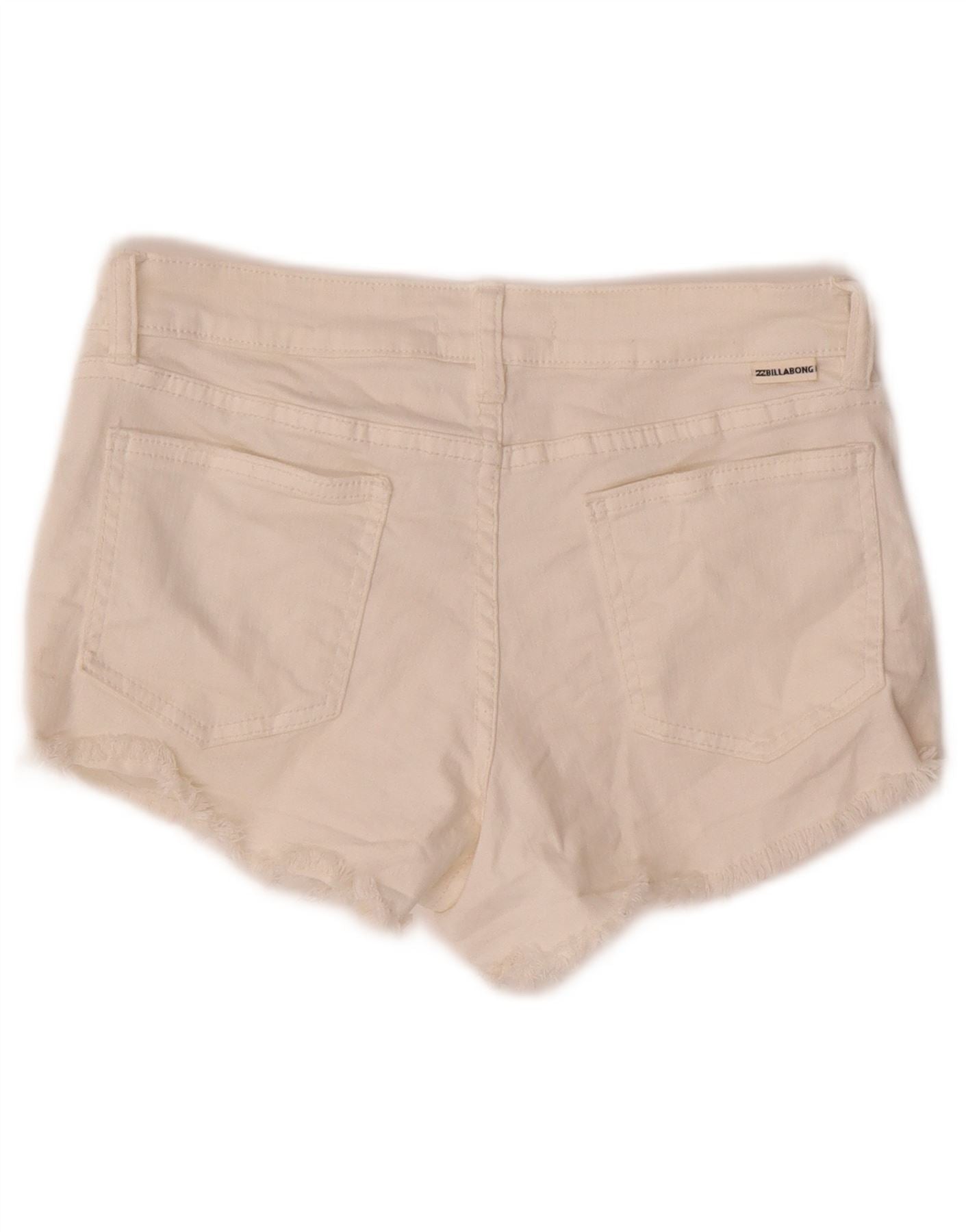 BILLABONG Womens Distressed Denim Hot Pants W26 Small Off White Cotton