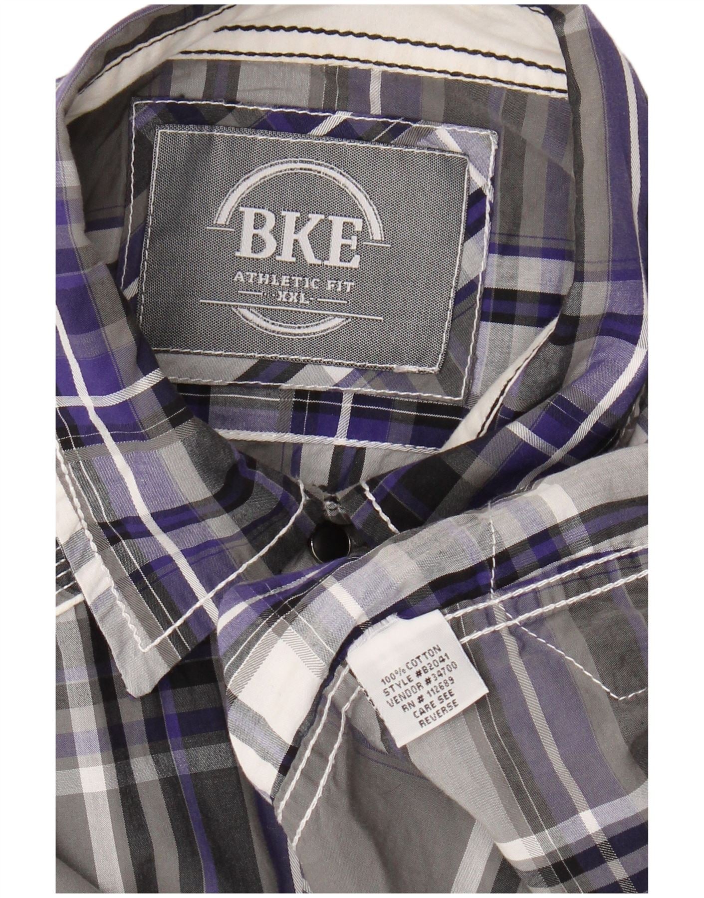 Cămașă de flanel BKE Athletic Fit 2XL, bumbac cu carouri gri