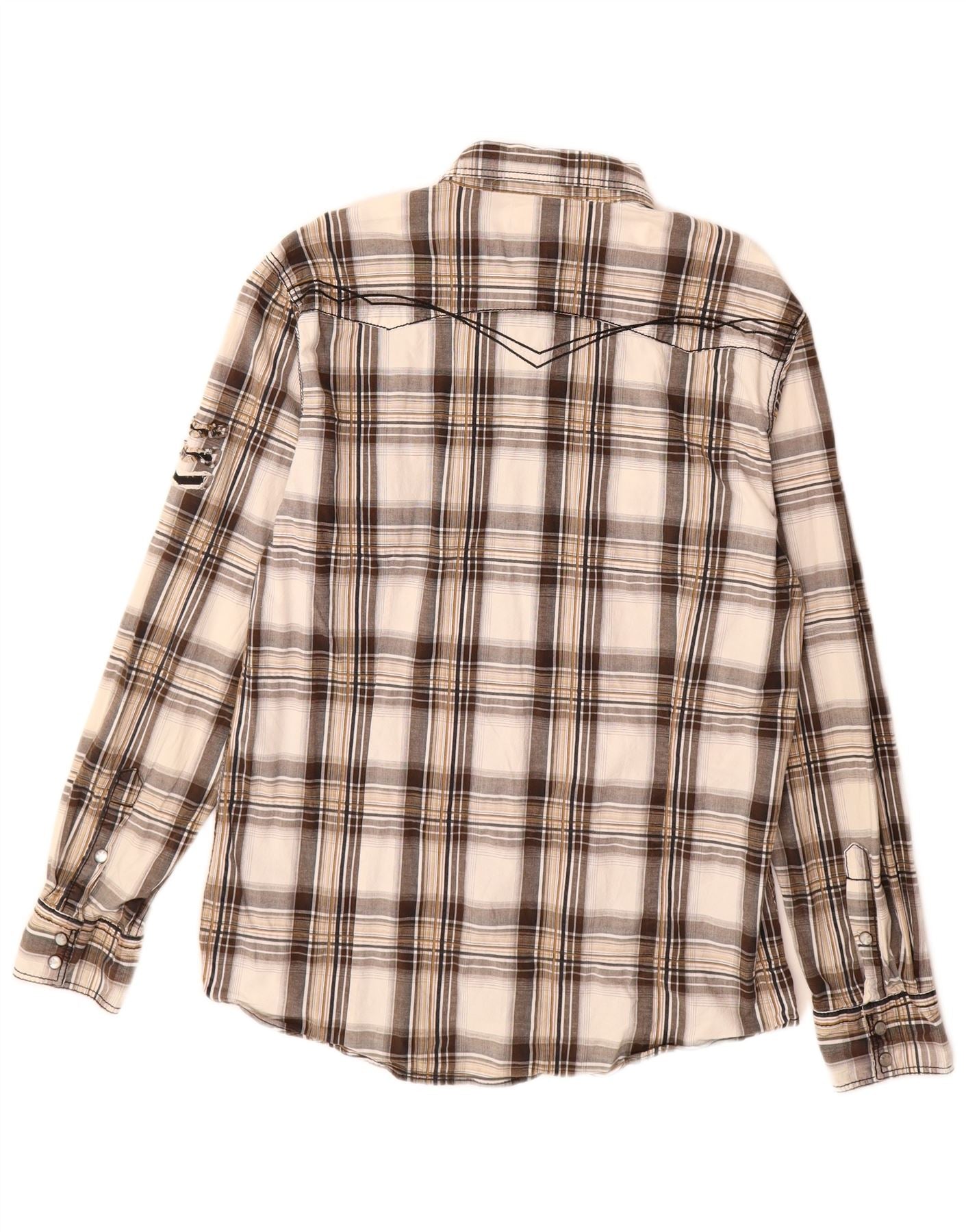 Cămașă atletică BKE pentru bărbați, bumbac cu carouri mari, maro