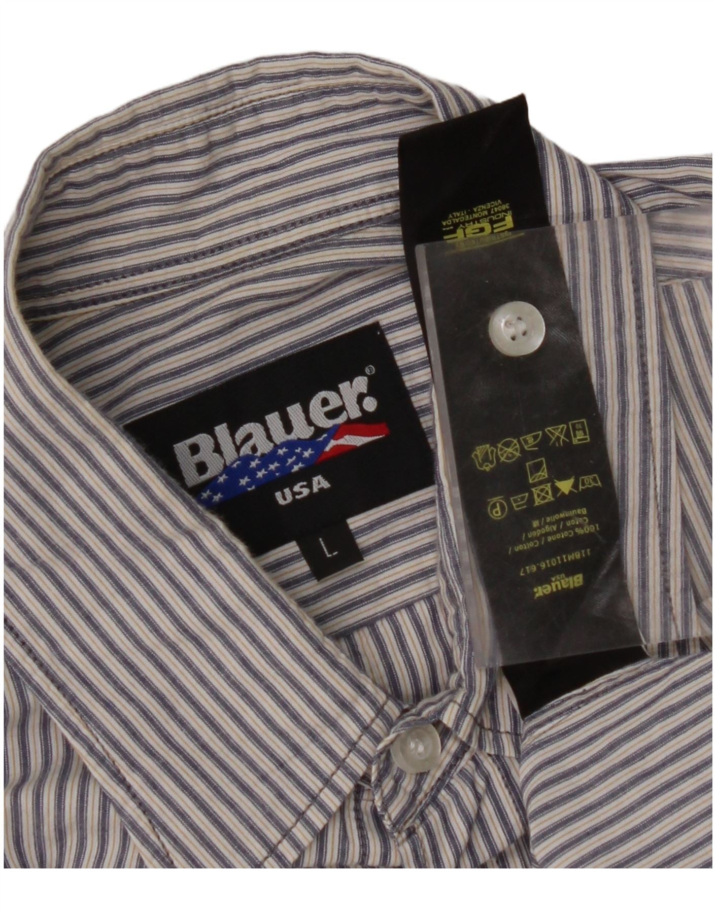 Cămașă militară cu mânecă scurtă pentru bărbați BLAUER, bumbac cu dungi albastre