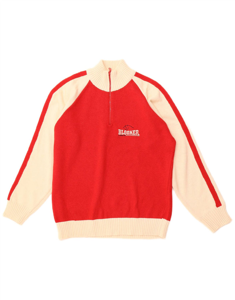 Pulover pentru bărbați BLOOKER, cu fermoar, cu gât, din bumbac mare, roșu, bloc de culoare