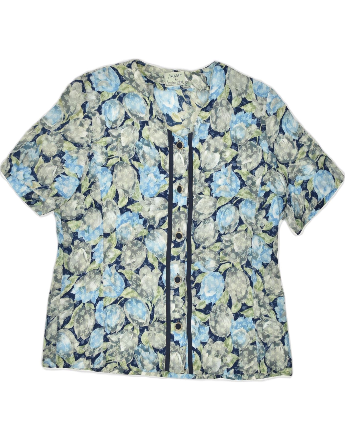 Bluză cămașă cu mânecă scurtă pentru femei VINTAGE IT 52 XL Verde Floral