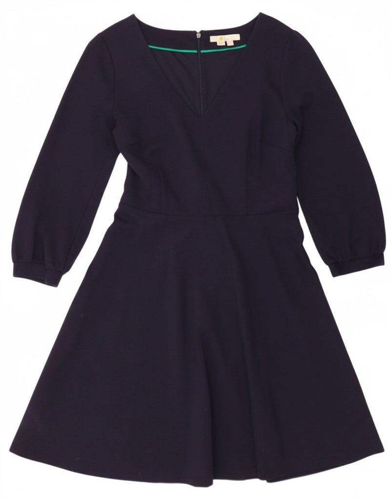 BODEN Womens 3/4 Sleeve A-Line Dress UK 10 Samll Navy Blue Cotton