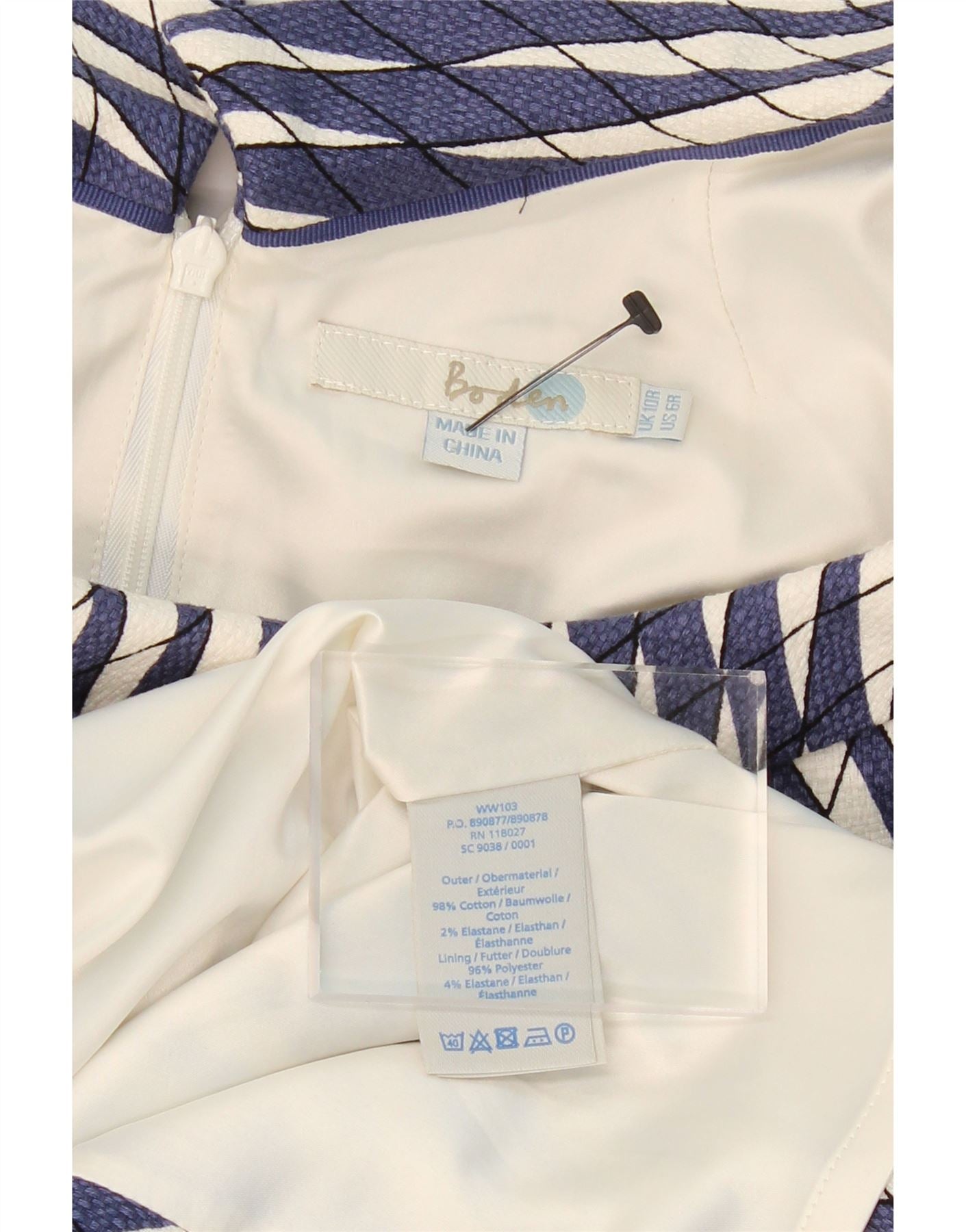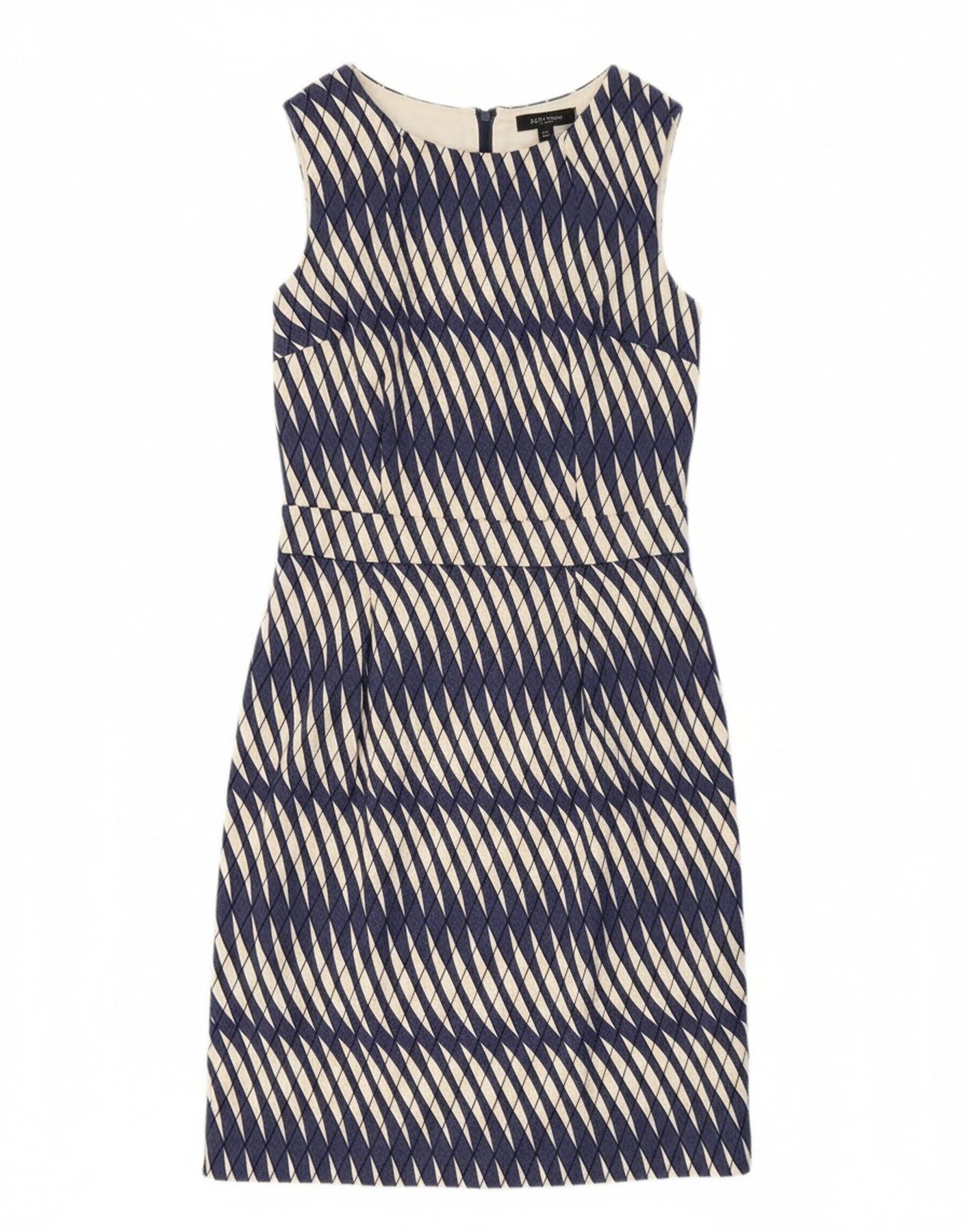 BODEN Womens Sleeveless Sheath Dress UK 10 Small Navy Blue Geometric