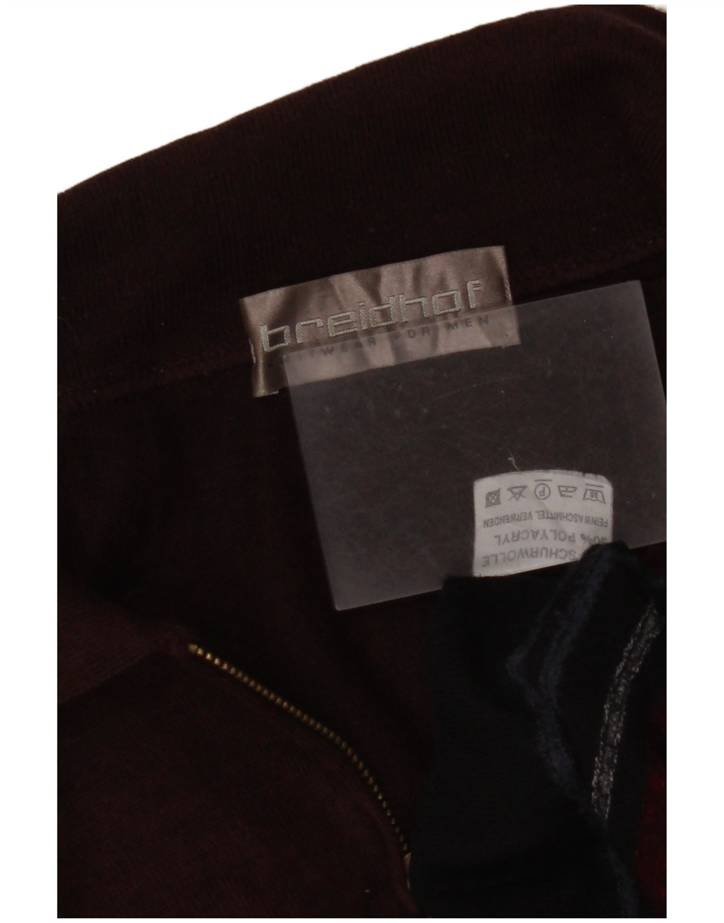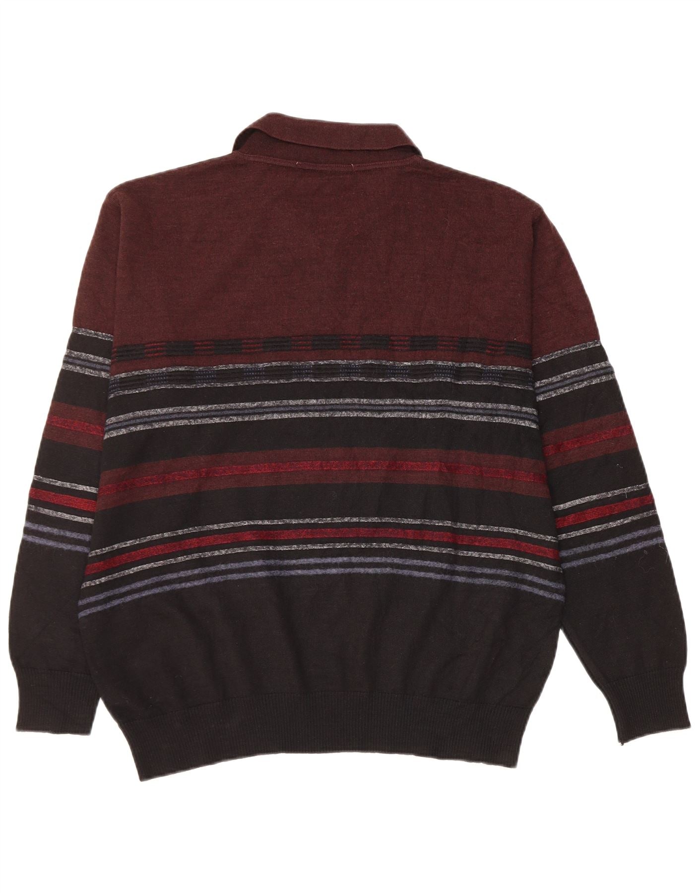 BREIDHOF Pulover pentru bărbați cu gât polo, lână mare cu dungi bordeaux