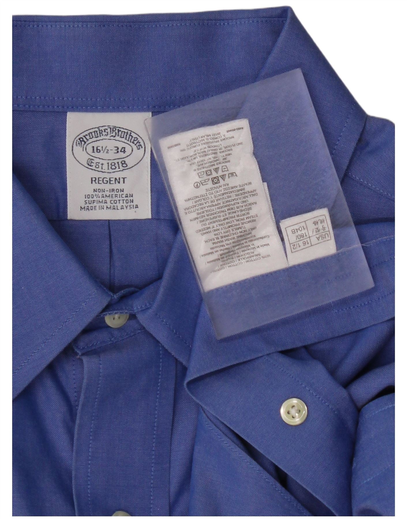 BROOKS BROTHERS Mens Regent Shirt Size 16 1/2 Large Blue Cotton