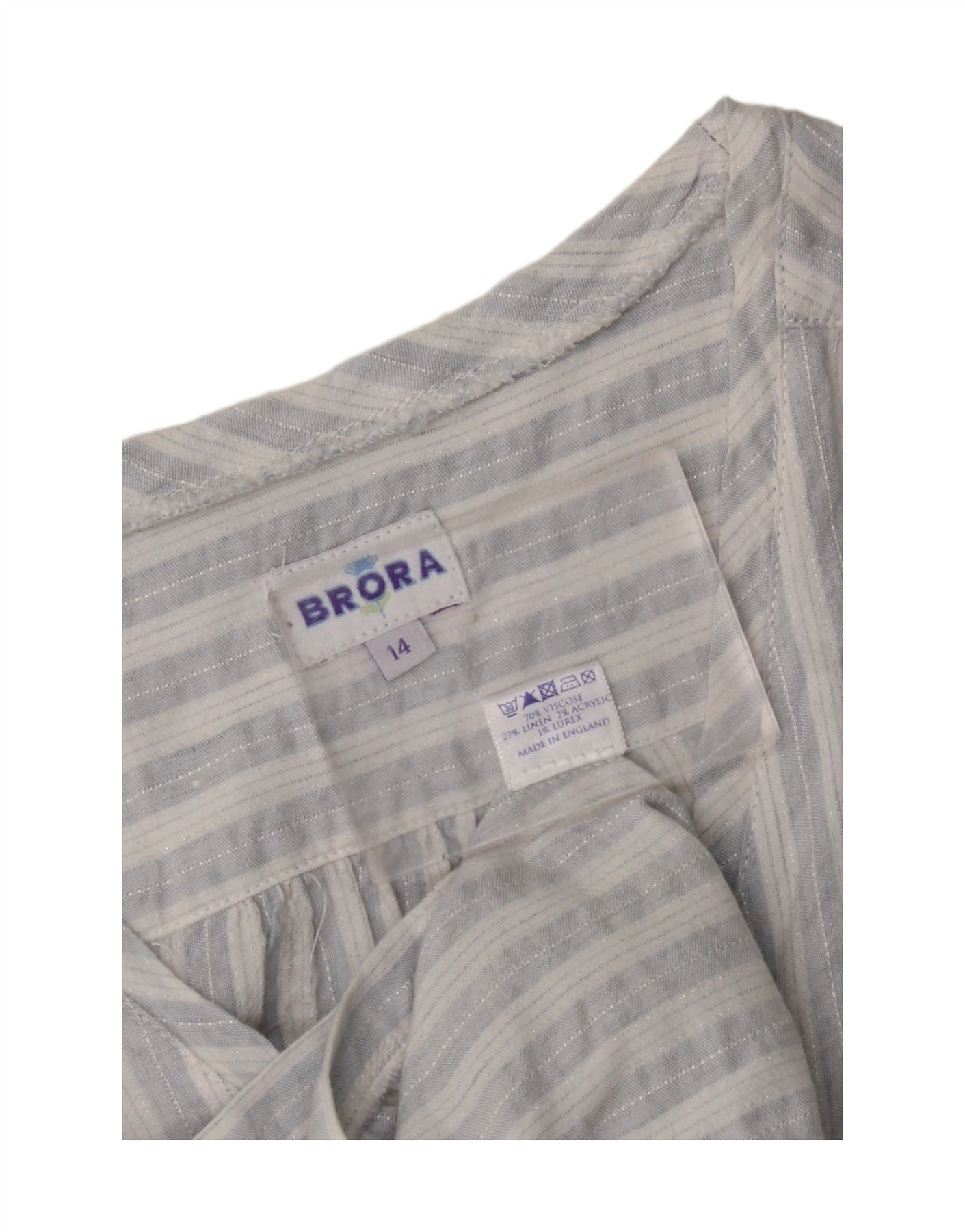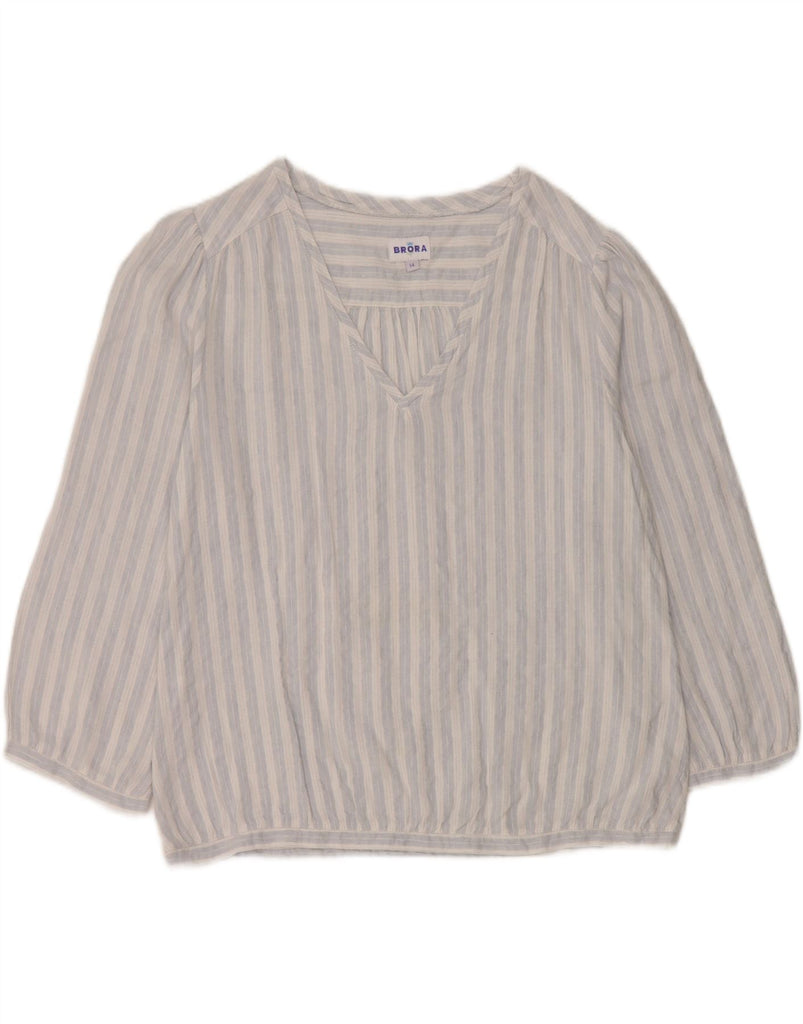 BRORA Womens 3/4 Sleeve Blouse Top UK 14 Medium Blue Striped Viscose