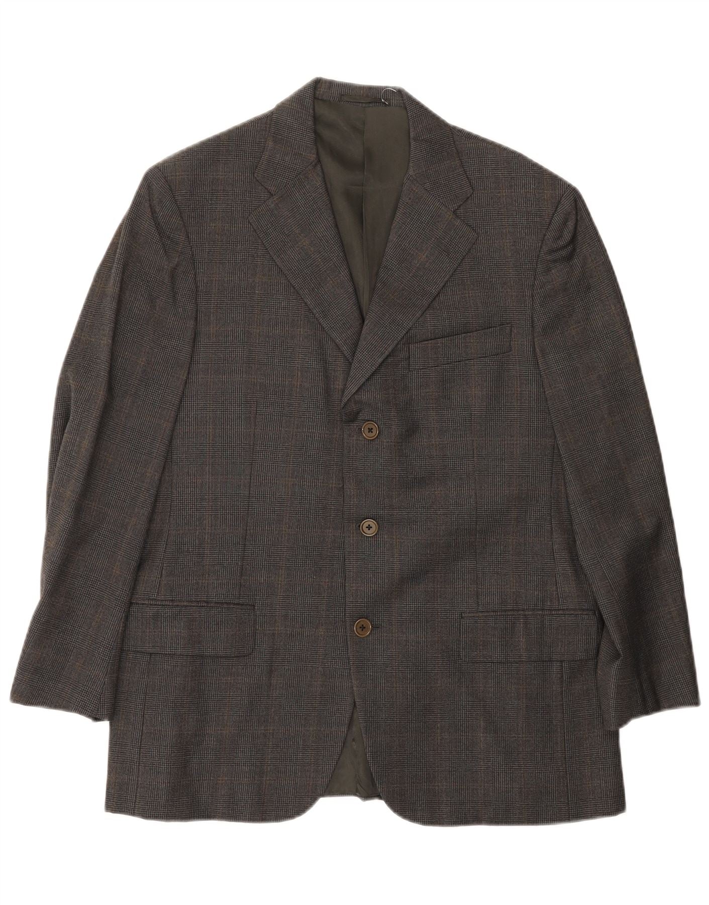 BURBERRY Mens 3 Button Blazer Jacket IT 48 Medium Grey Houndstooth Wool