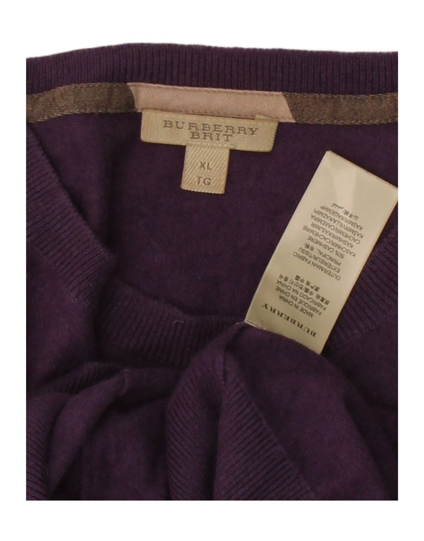 BURBERRY Mens BRIT Crew Neck Jumper Sweater XL Purple Cashmere