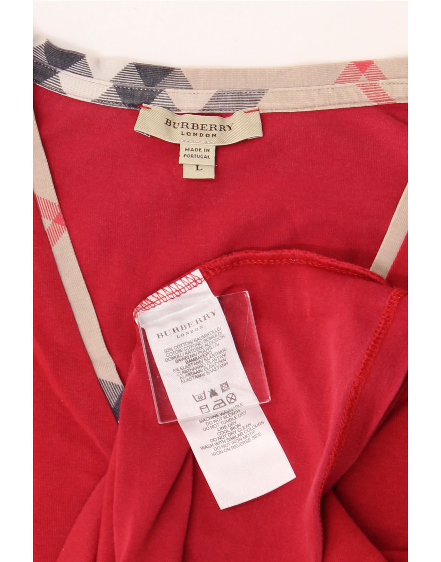 BURBERRY Womens Crop T-Shirt Top UK 16 Large Burgundy Cotton