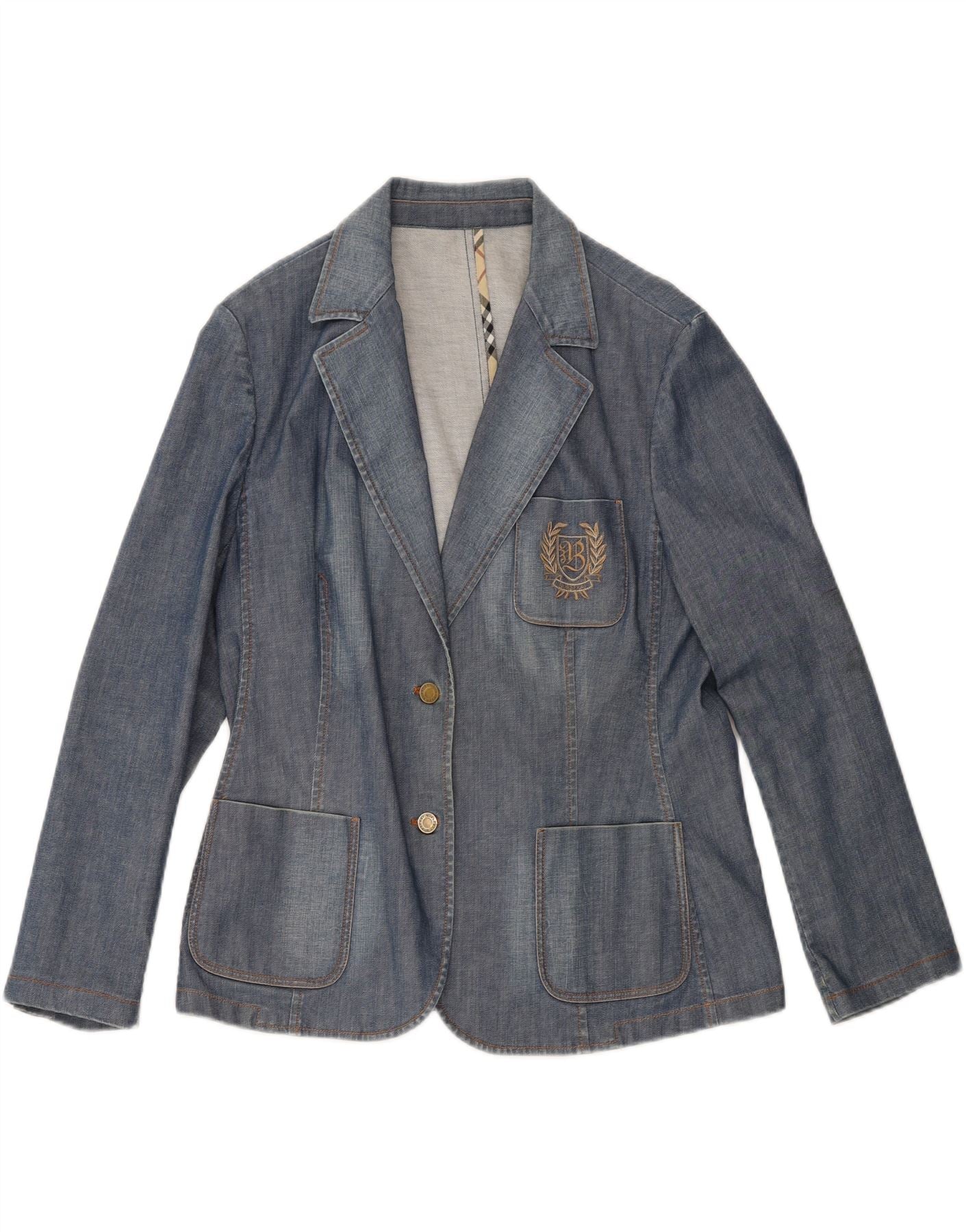 BURBERRY Womens Denim 2 Button Blazer Jacket UK 16 Large Blue Cotton
