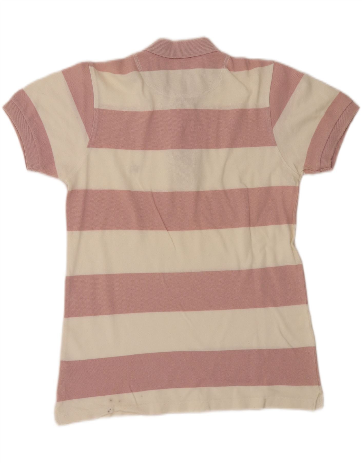 BURBERRY Womens Slim Fit Polo Shirt UK 12 Medium Pink Striped Cotton