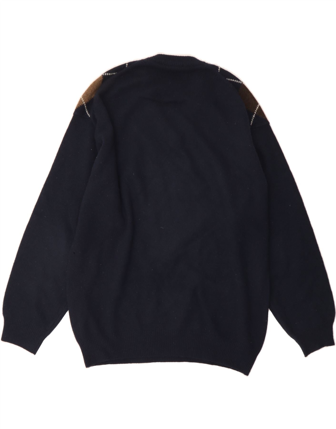 BURLINGTON Mens V-Neck Jumper Sweater IT 52 Large Navy Blue Argyle/Diamond