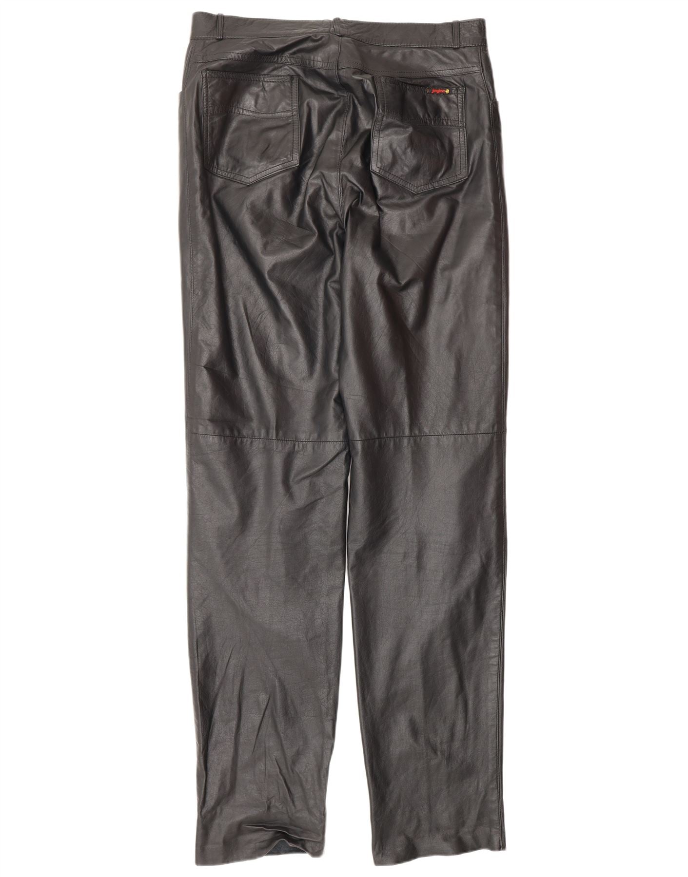 - AI Description: This C&A mens leather biker trousers are crafted from smooth black leather, offering a sleek, robust finish. They feature a regular fit and a button closure for a classic silhouette. Zipped pockets add practical detail and a modern edge. The biker style is enhanced by subtle design elements. A discreet logo provides a signature touch.