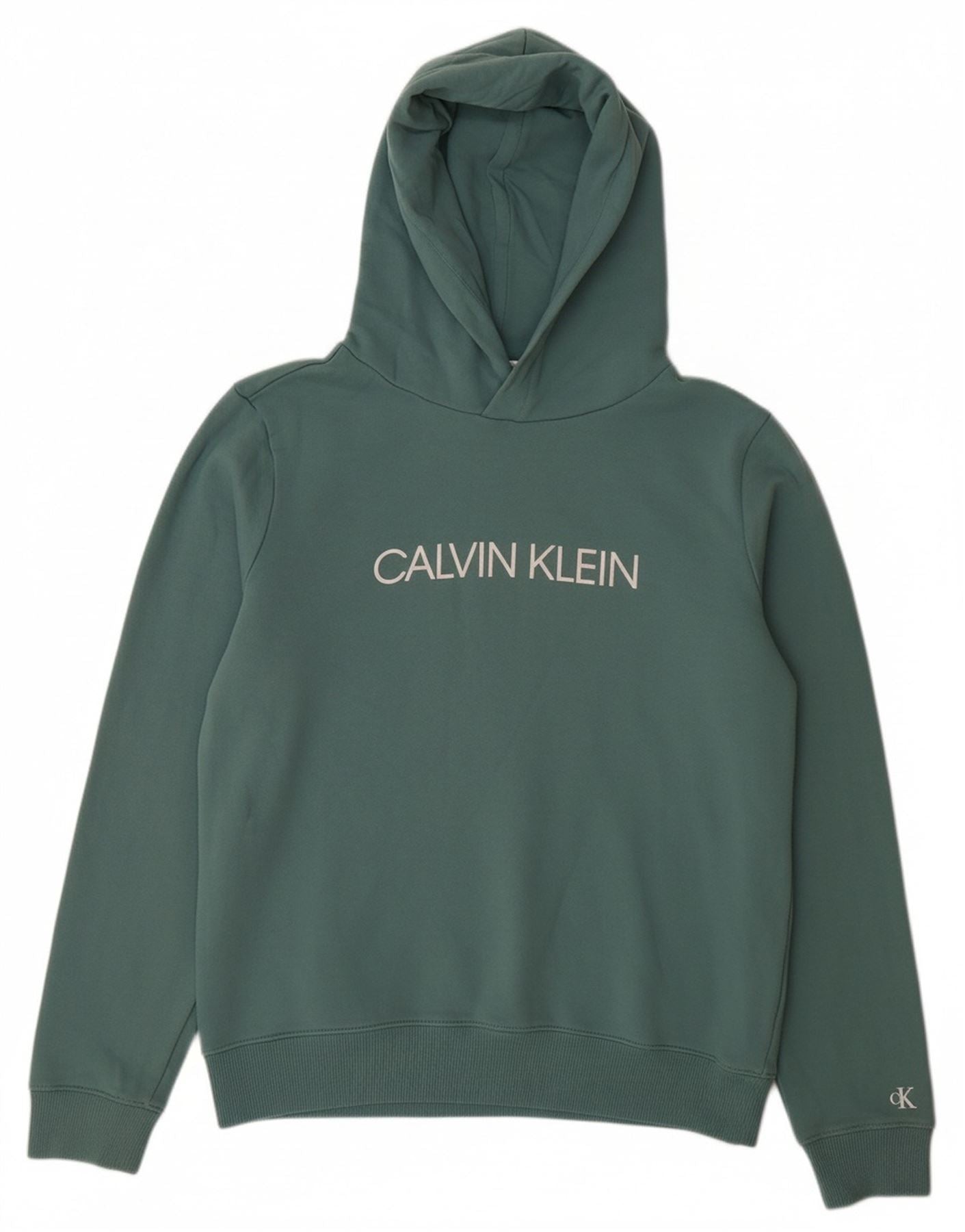 CALVIN KLEIN JEANS Pulover cu glugă cu grafic pentru băieți 13-14 ani, bumbac verde