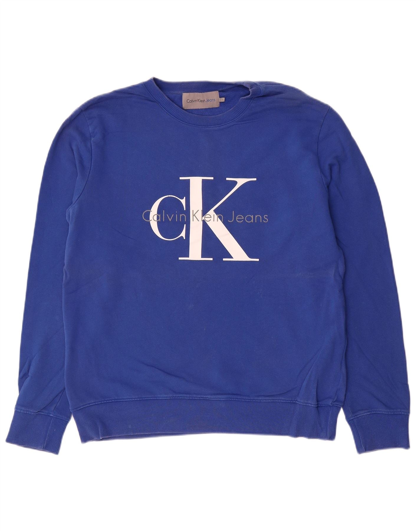 CALVIN KLEIN JEANS Hanorac grafic pentru bărbați Pulover mare, albastru, bumbac