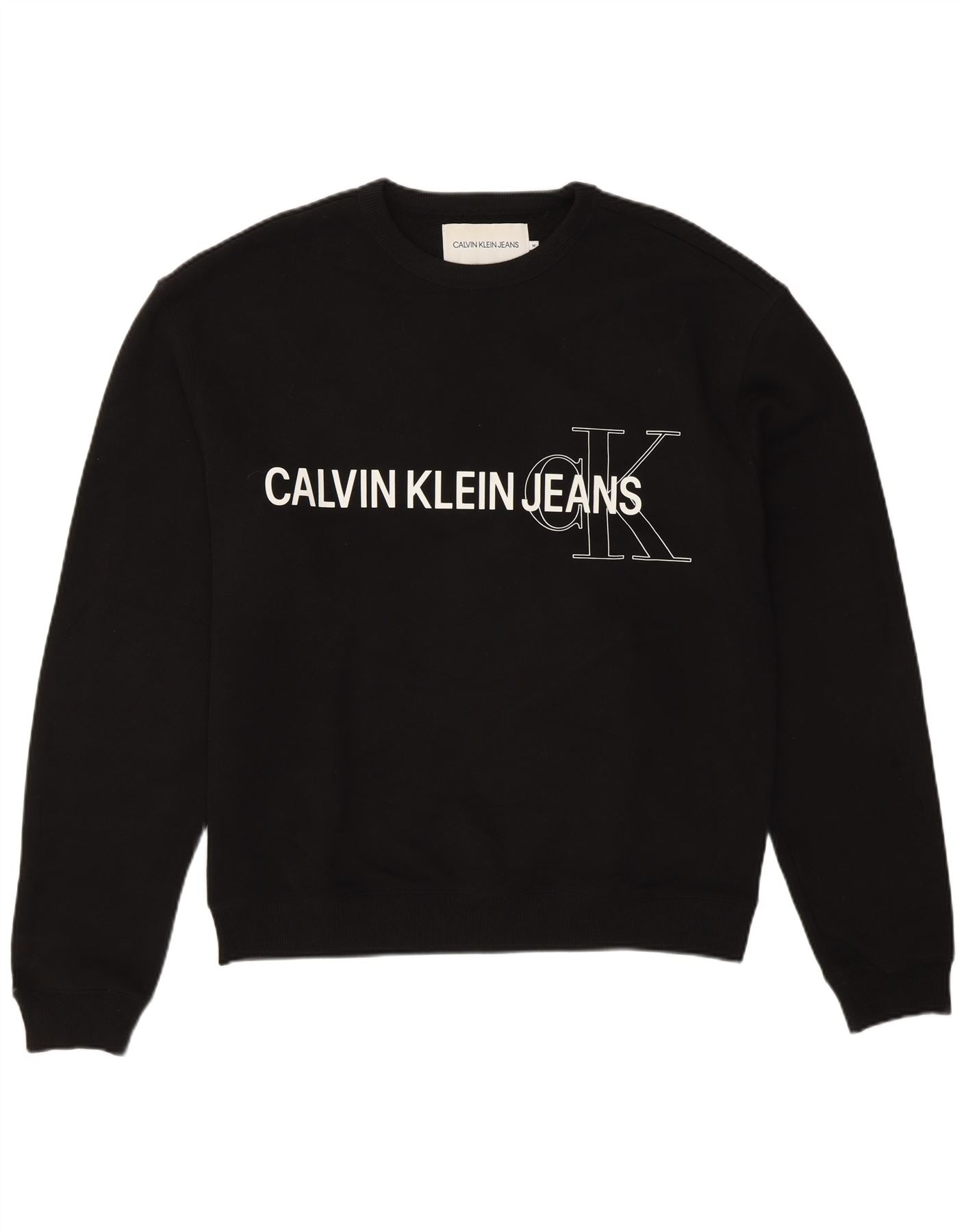 Pulover Calvin Klein Jeans pentru bărbați cu grafică, bumbac mediu negru