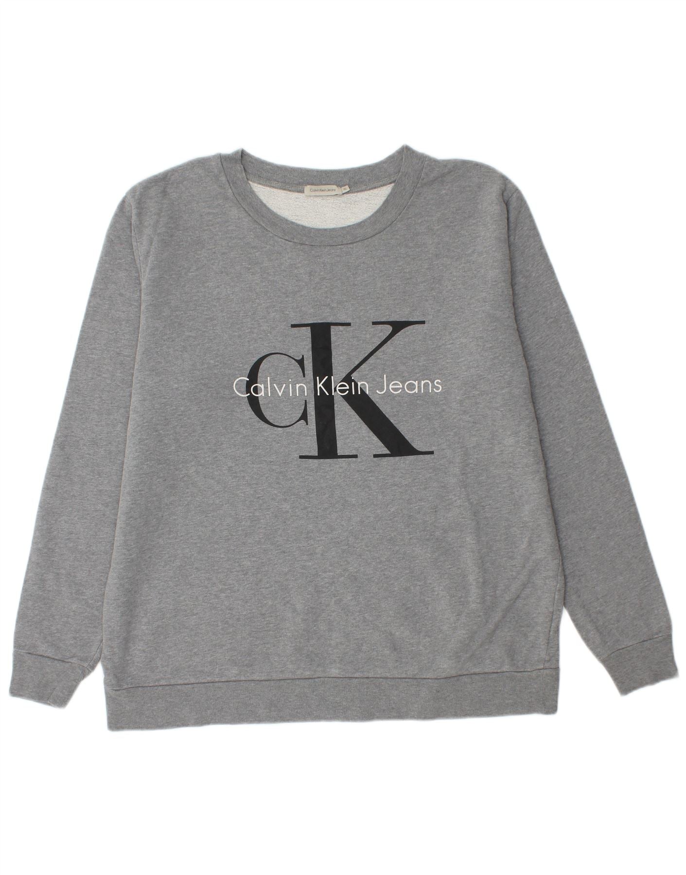CALVIN KLEIN JEANS Hanorac grafic pentru bărbați Pulover XL bumbac gri