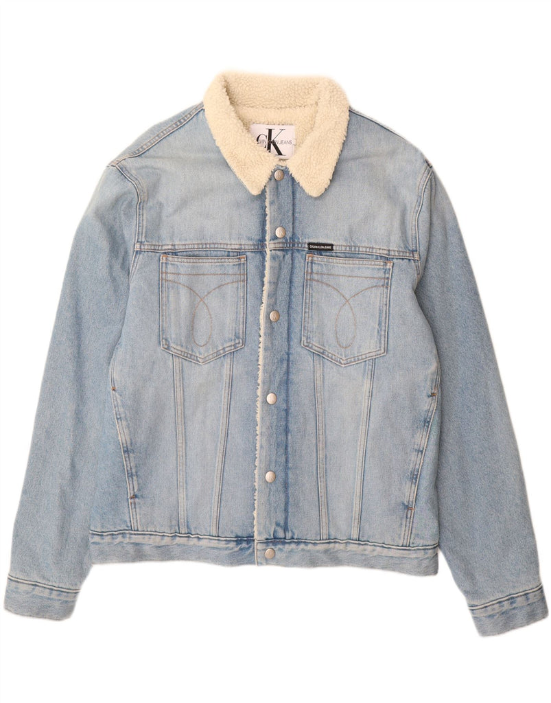 CALVIN KLEIN JEANS Jachetă de blugi Sherpa pentru bărbați UK 42 XL Bumbac albastru