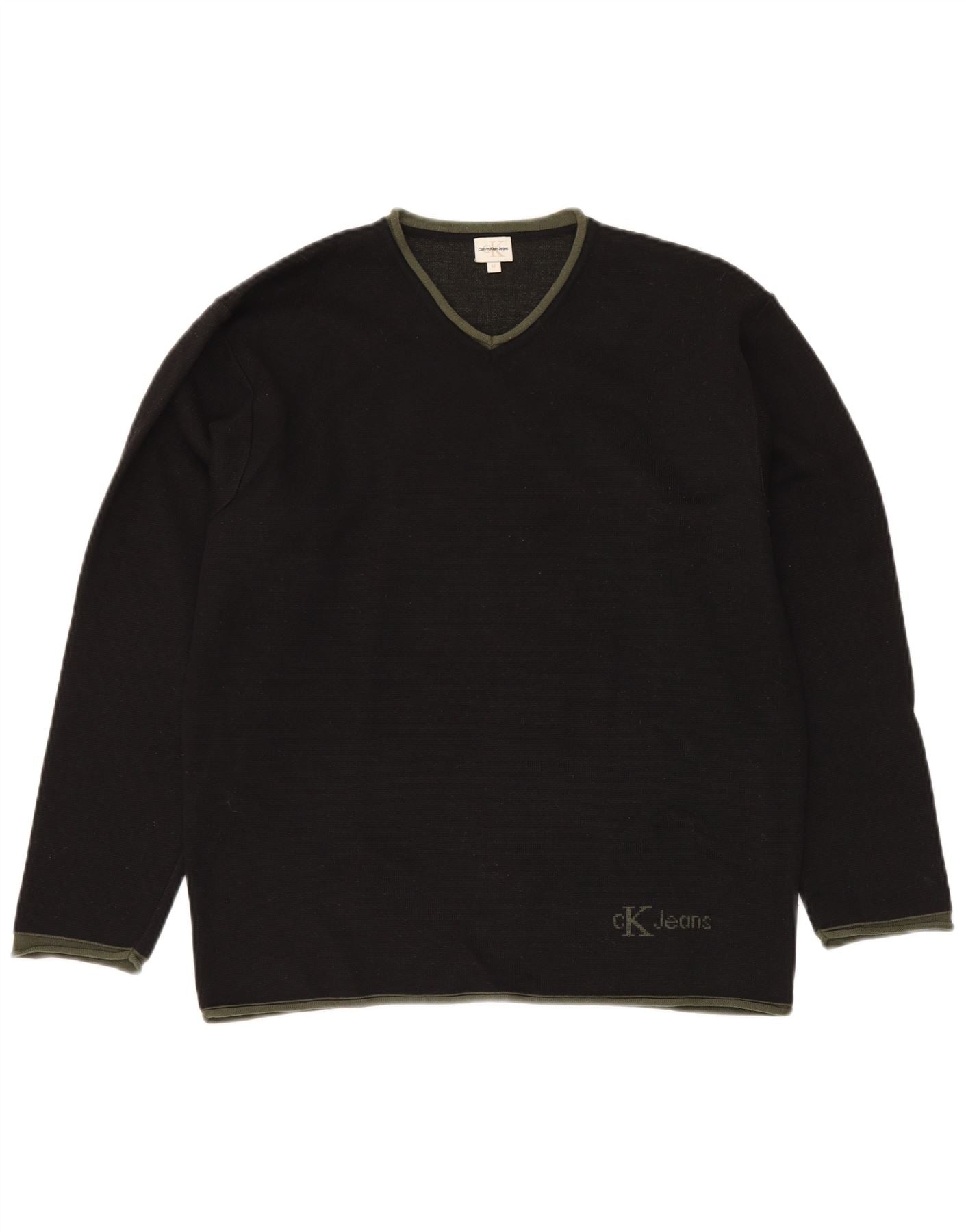 CALVIN KLEIN JEANS Pulover cu decolteu în V pentru bărbați din lână neagră medie