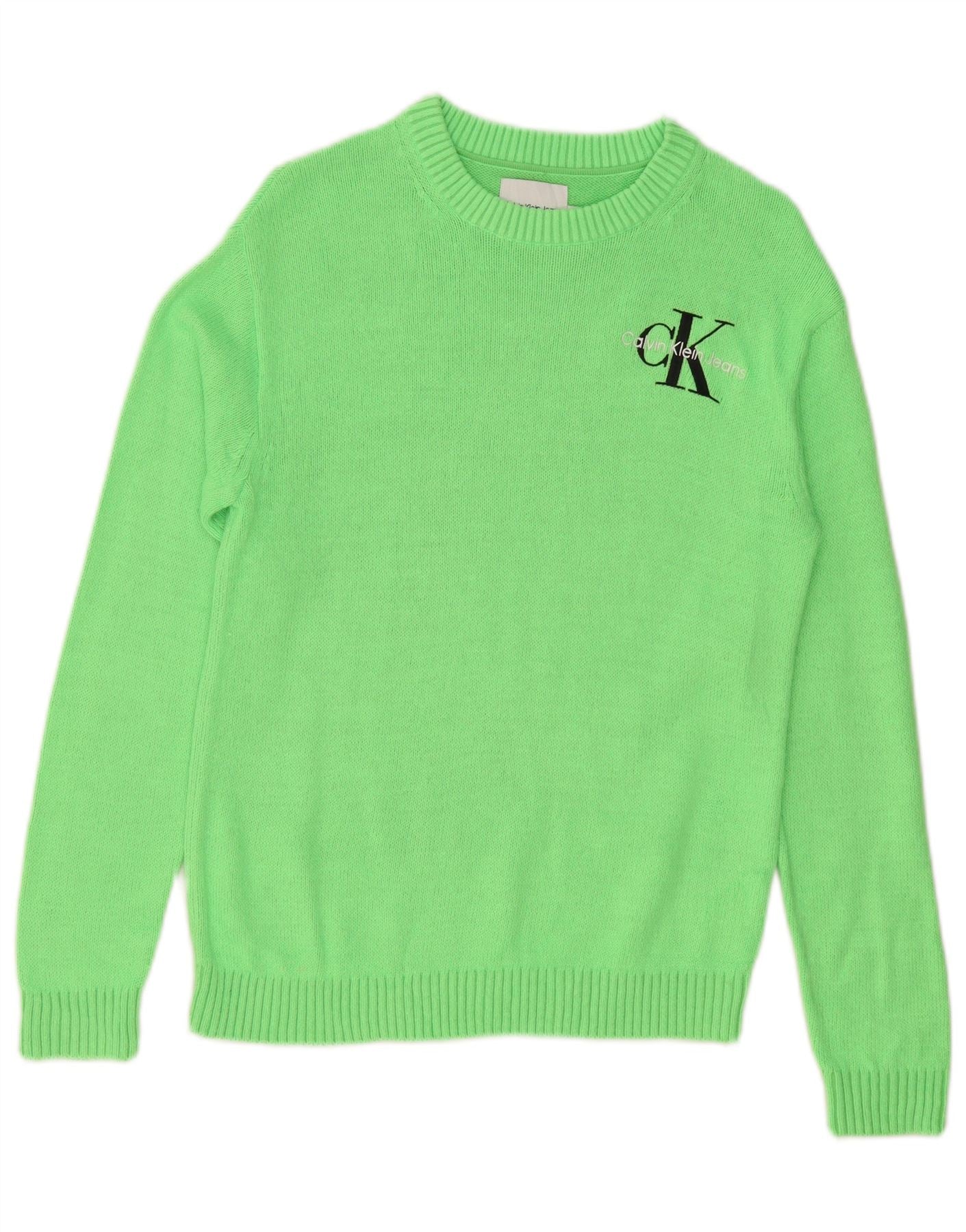 CALVIN KLEIN JEANS Pulover pentru femei cu decolteu rotund UK 14 verde mediu