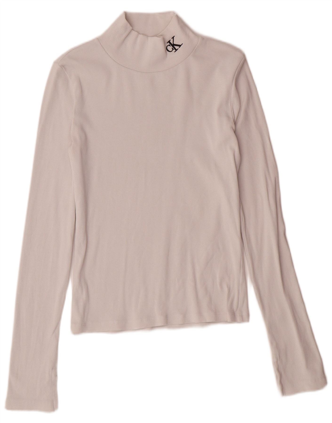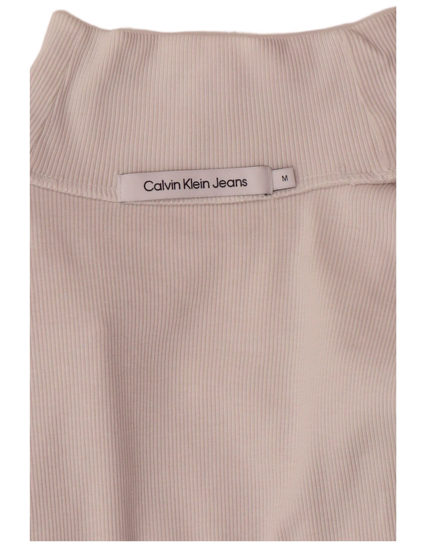 CALVIN KLEIN JEANS Crop Top pentru femei cu mânecă lungă UK 12 Medium White