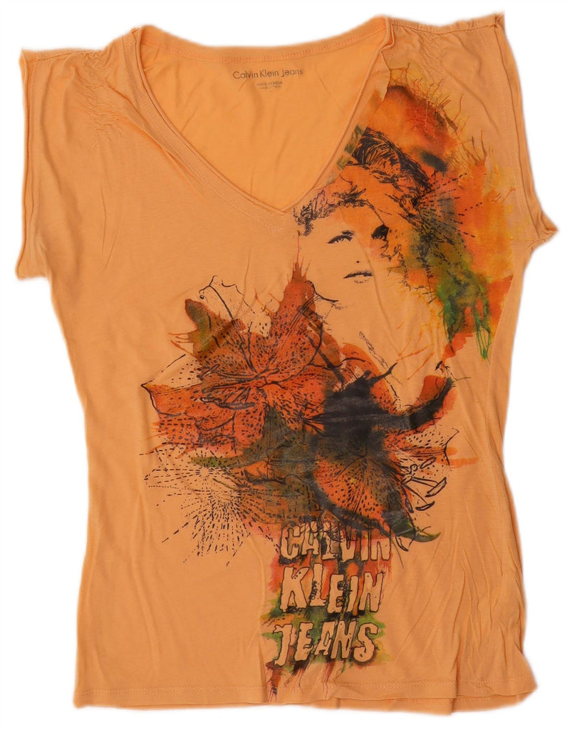 CALVIN KLEIN JEANS Tricou grafic pentru femei Top UK 10 Bumbac portocaliu mic