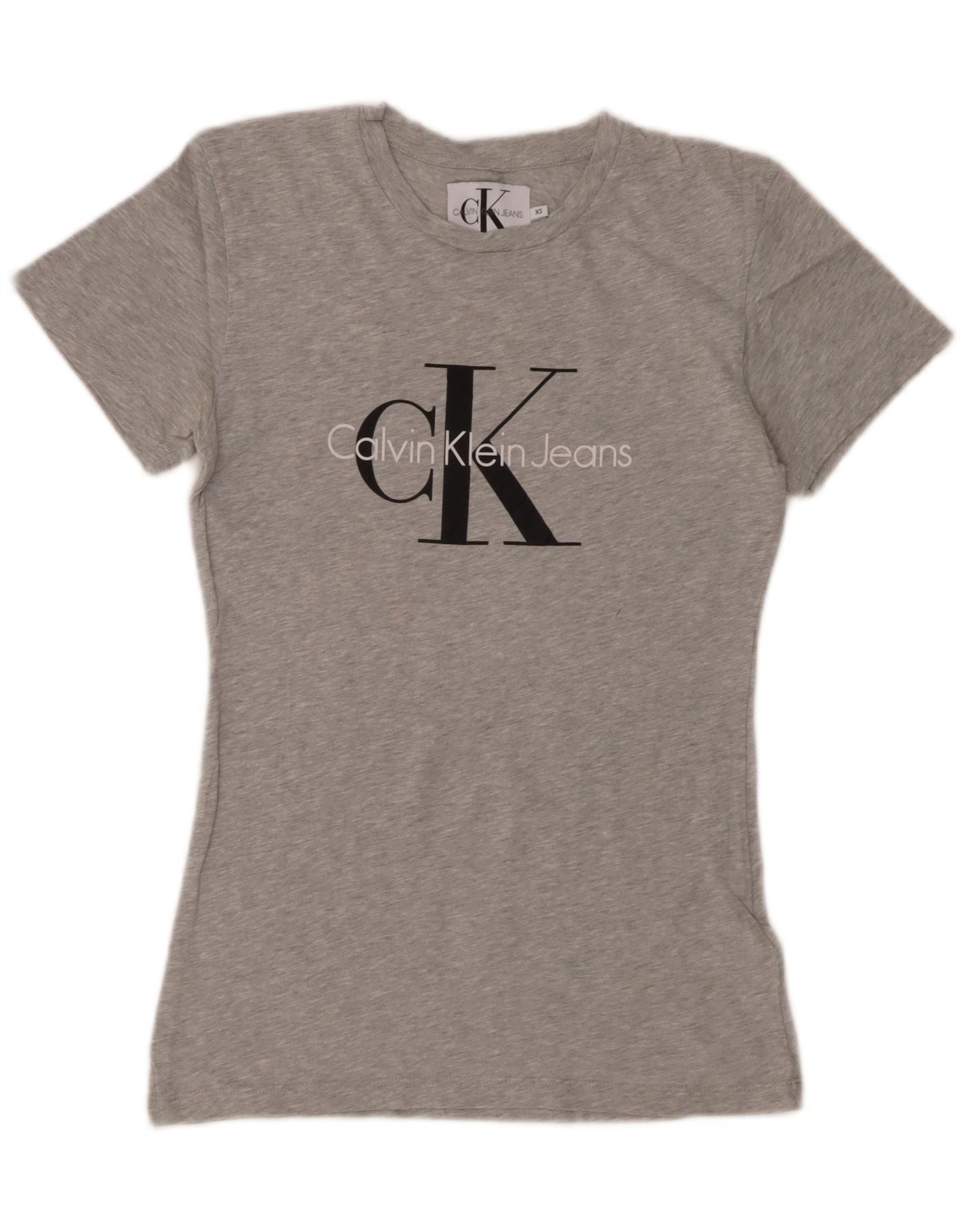 CALVIN KLEIN JEANS Tricou cu grafic pentru femei Top UK 6 XS bumbac cu pete gri