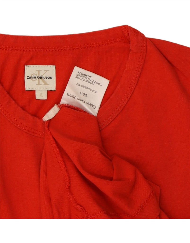 CALVIN KLEIN JEANS Womens T-Shirt Top UK 14 Large Red Cotton