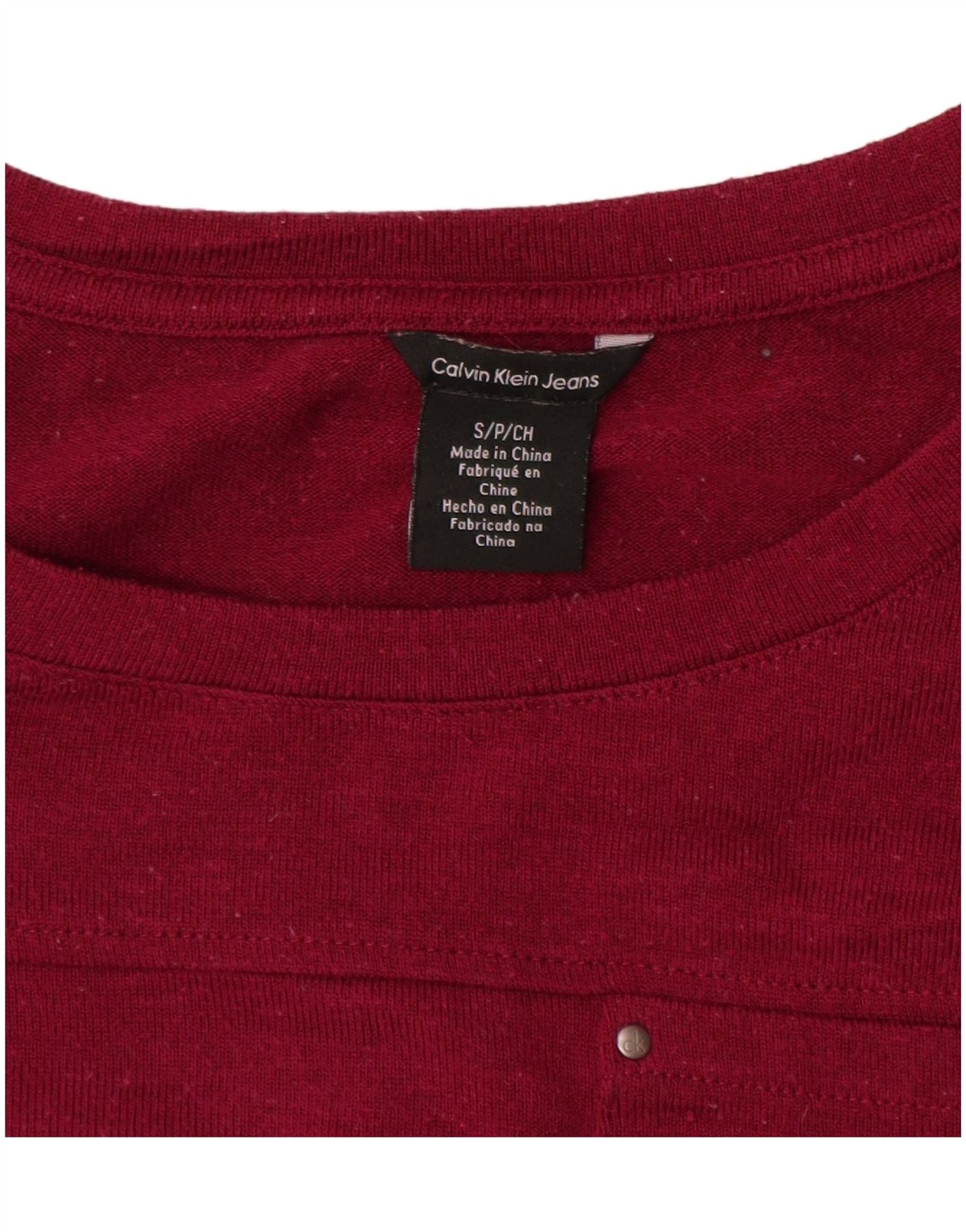 CALVIN KLEIN JEANS Top pentru femei cu mâneci 3/4 UK 10 Mic Bordeaux Poliester