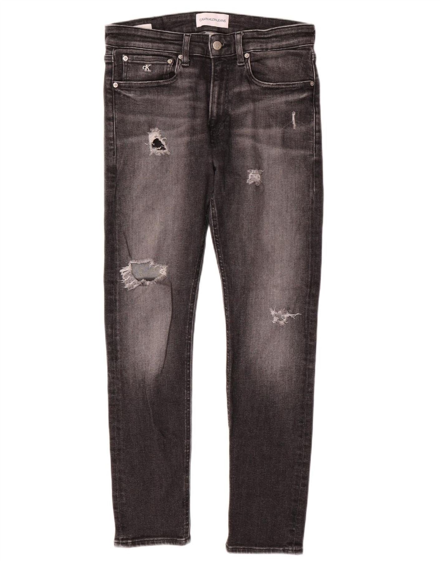 CALVIN KLEIN Mens Distressed Skinny Jeans W31 L30 Grey Cotton