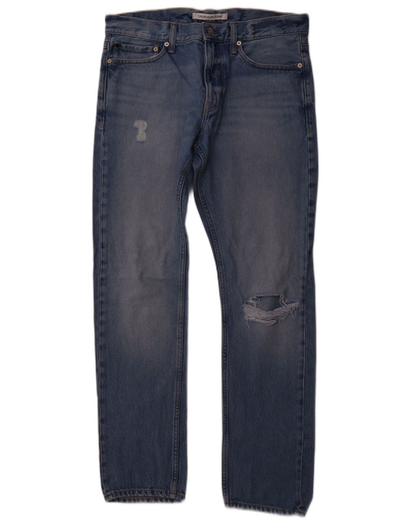 CALVIN KLEIN Mens Distressed Slim Jeans W32 L32 Blue Cotton