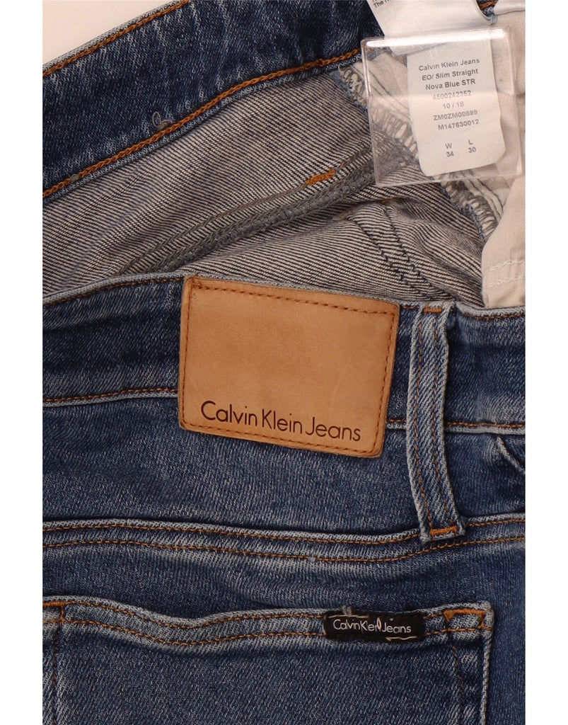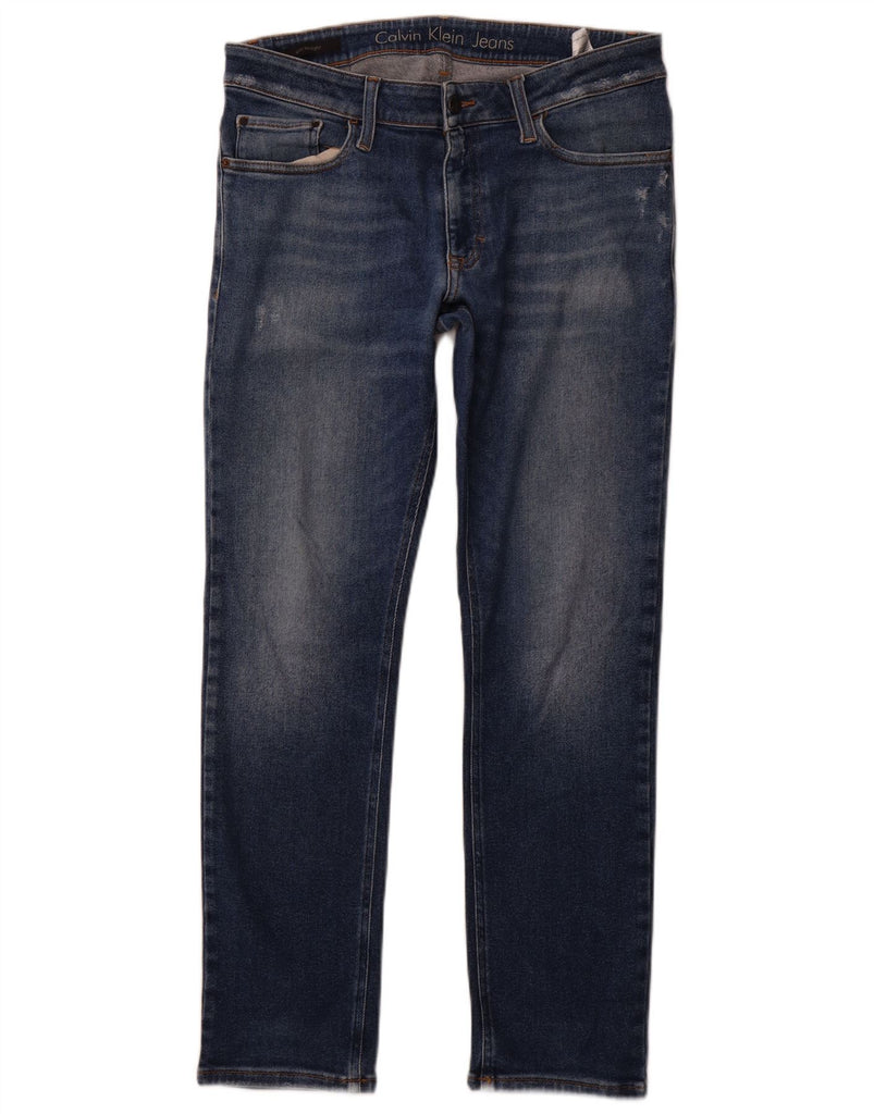 CALVIN KLEIN Mens Distressed Slim Straight Jeans W34 L30 Blue Cotton
