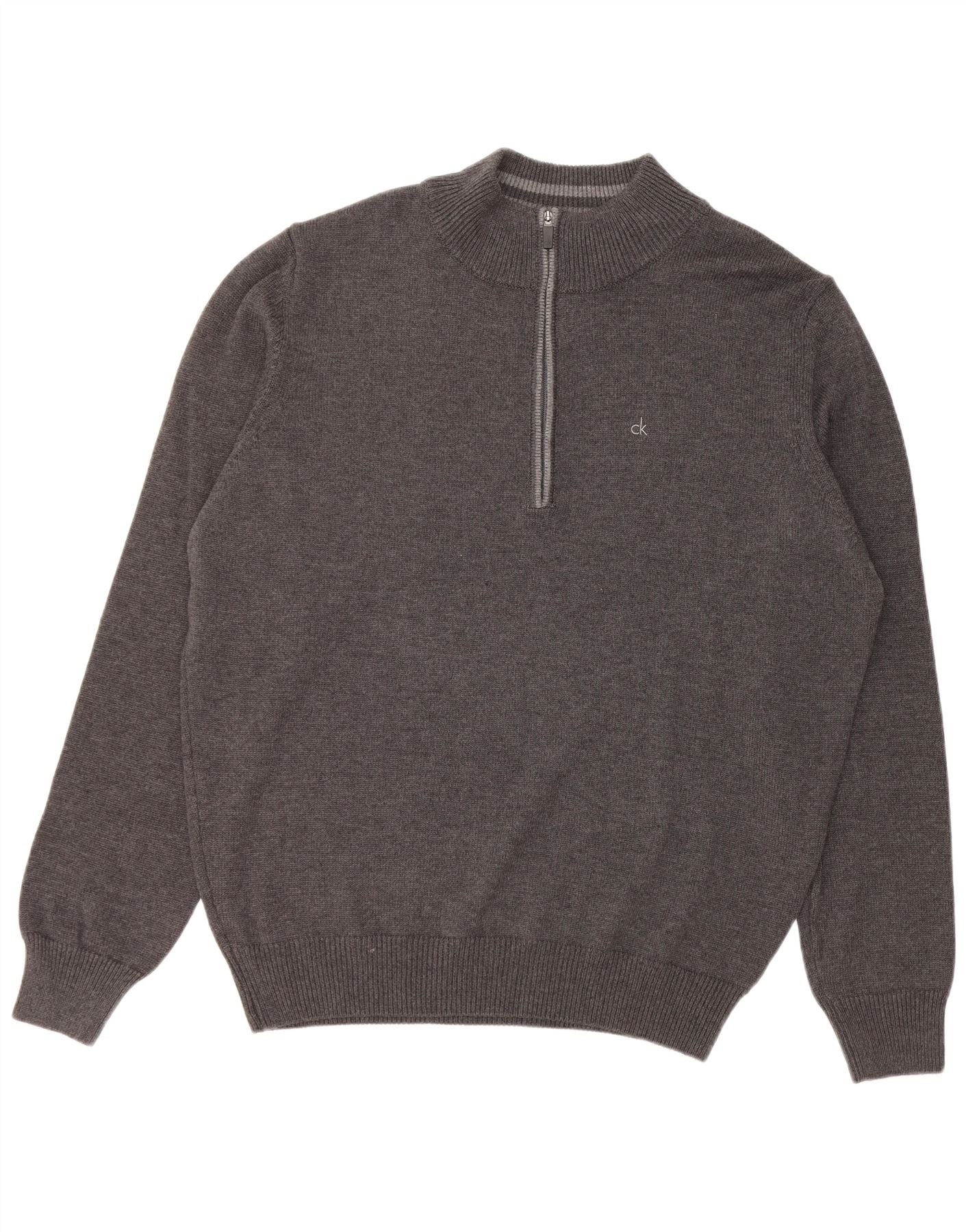 CALVIN KLEIN Pulover pentru bărbați de golf cu fermoar și gât, bumbac gri 2XL