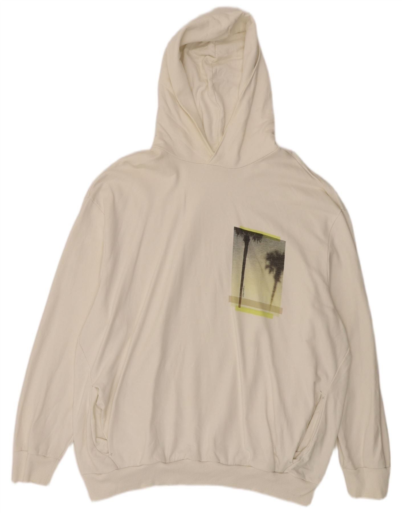 Pulover Calvin Klein pentru bărbați, cu glugă grafică, 3XL, bumbac alb