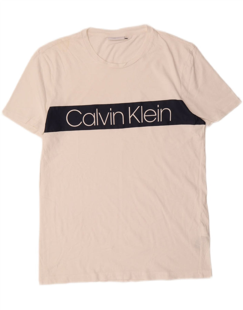 Tricou grafic CALVIN KLEIN pentru bărbați Top mediu alb din bumbac color-bloch