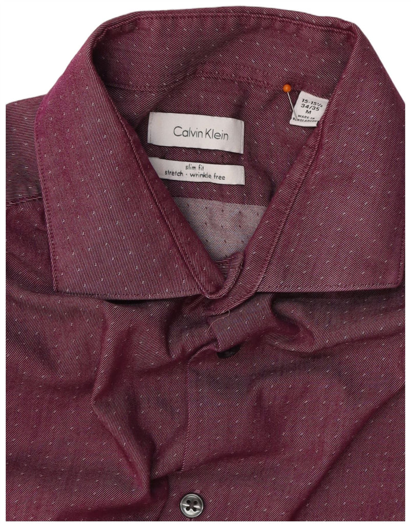 CALVIN KLEIN Mens Slim Fit Shirt Size 15 15 1/2 Medium Purple Spotted