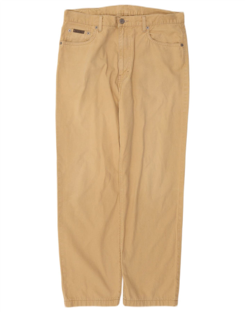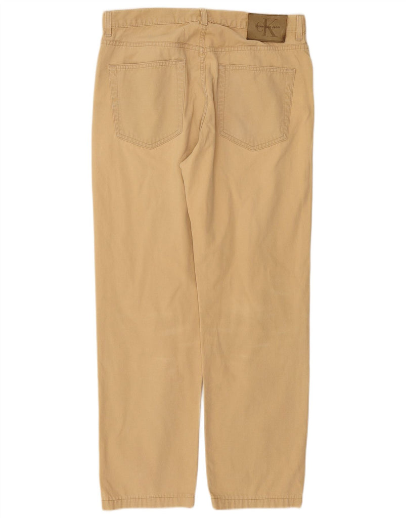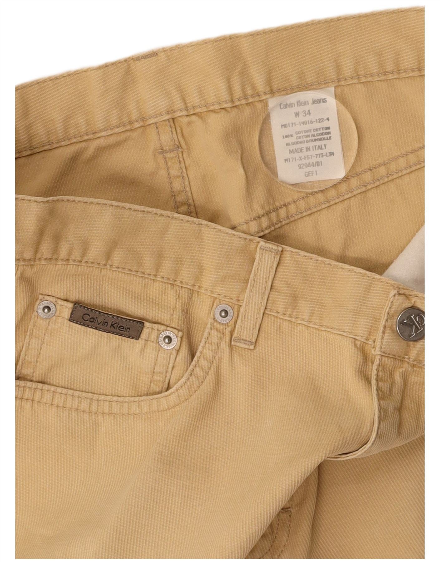 CALVIN KLEIN Mens Straight Casual Trousers W34 L28 Beige Pinstripe Cotton