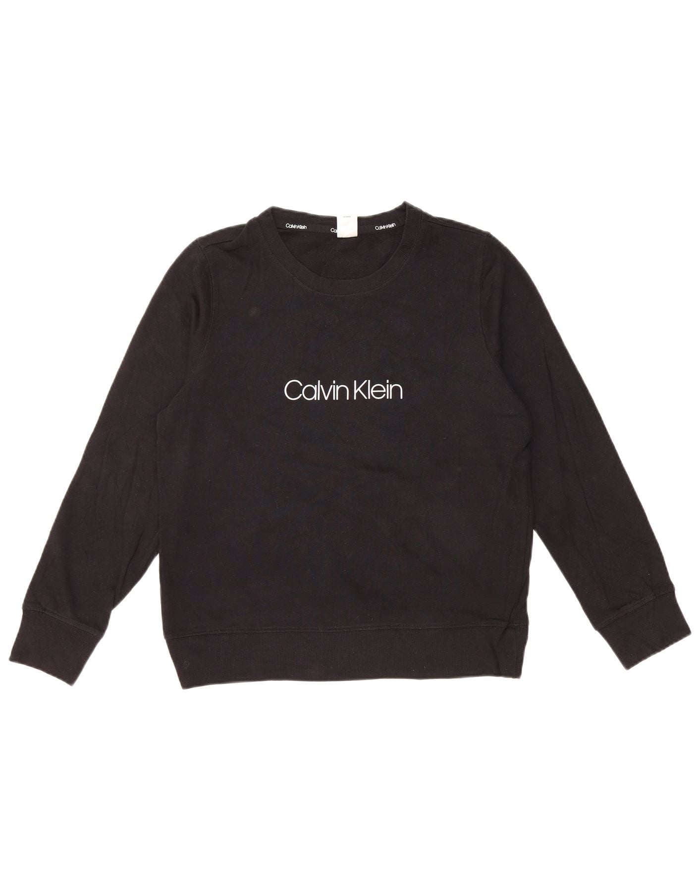 CALVIN KLEIN Pulover cu grafic pentru damă UK 14 Bumbac mediu negru