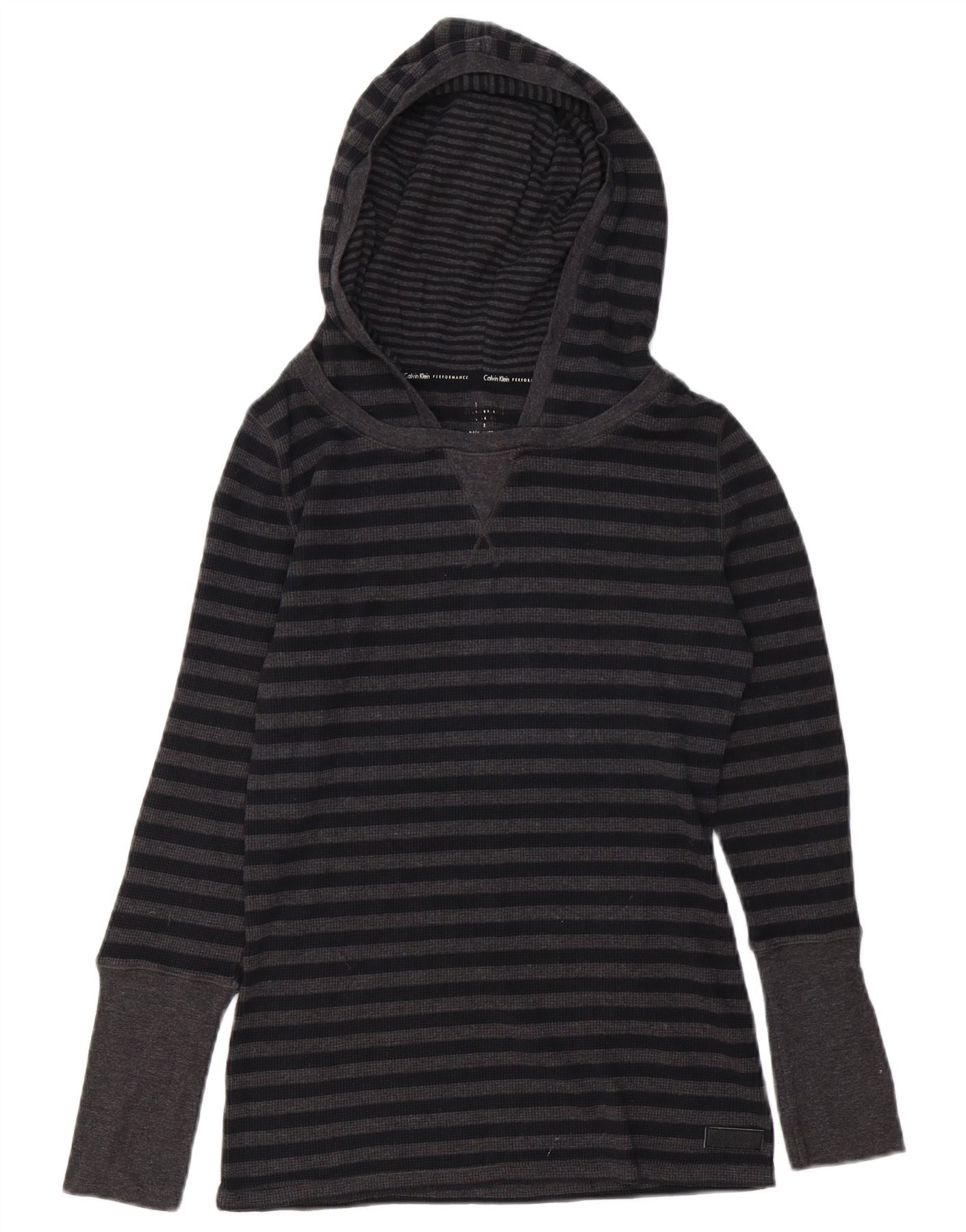 Top cu glugă pentru femei Calvin Klein cu mânecă lungă UK 12, bumbac cu dungi gri mediu