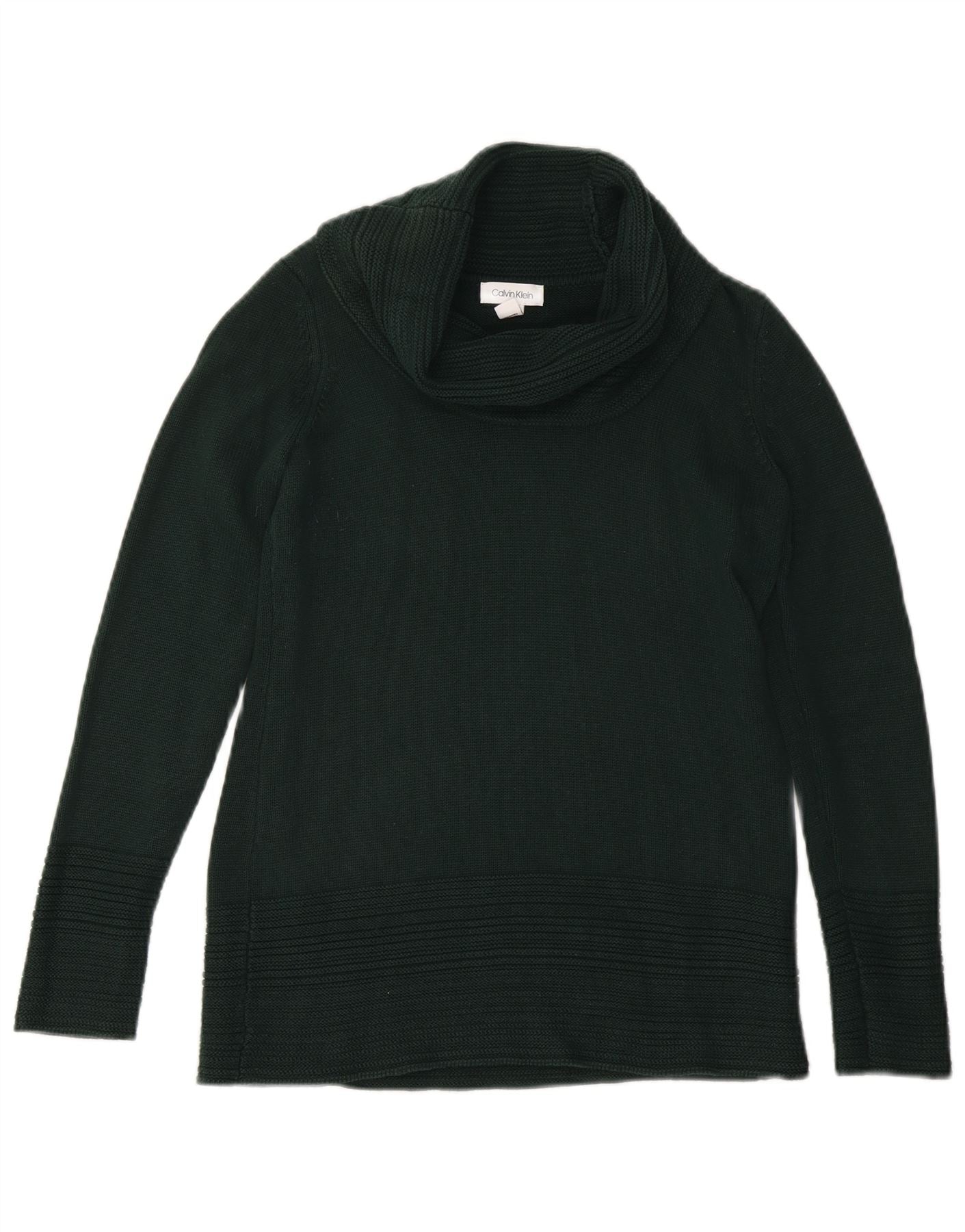 CALVIN KLEIN Pulover cu gât rulat pentru femei UK 10 Bumbac verde mic