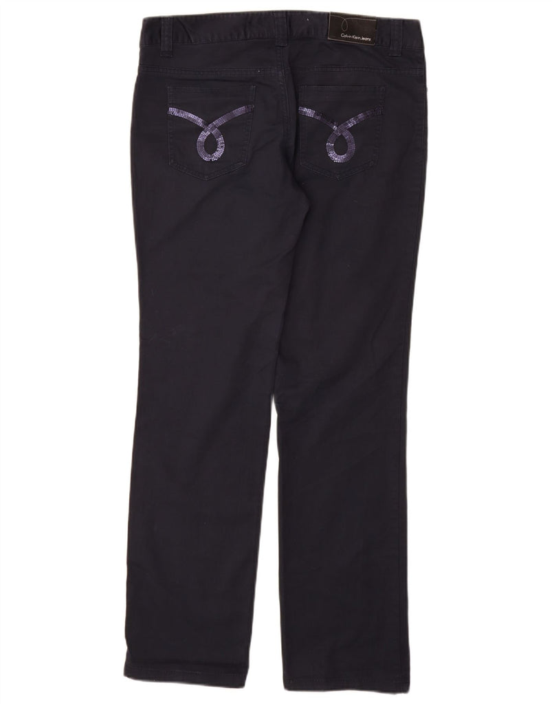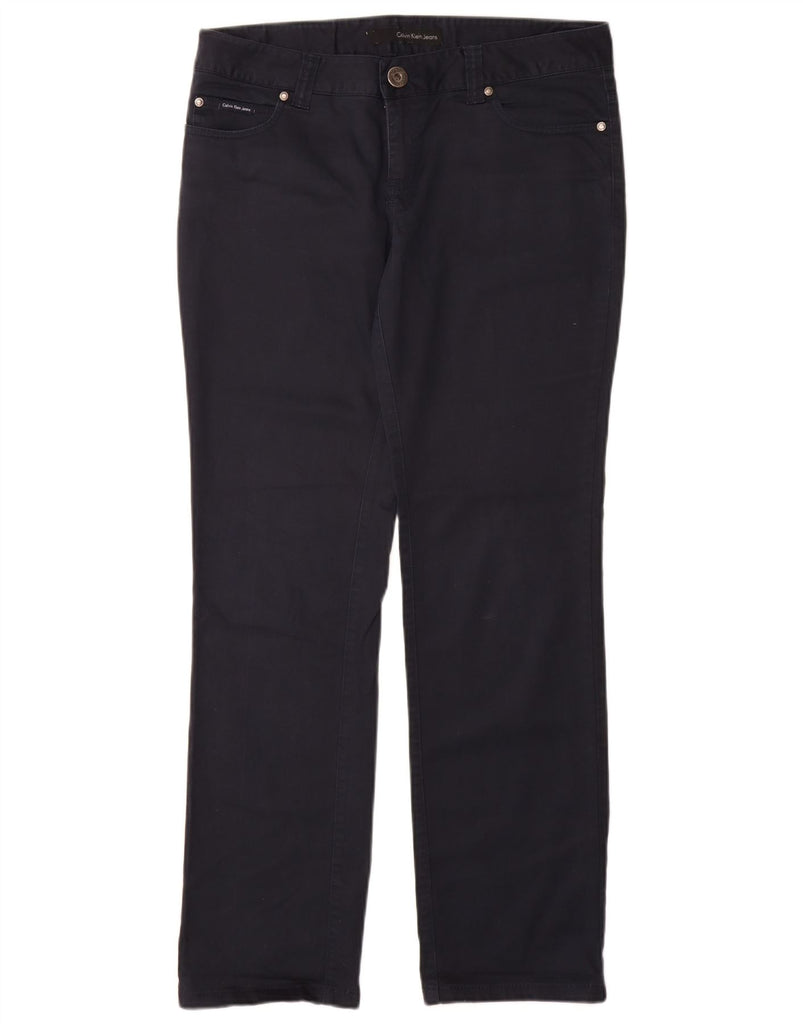 CALVIN KLEIN Womens Straight Casual Trousers W29 L30 Navy Blue Cotton