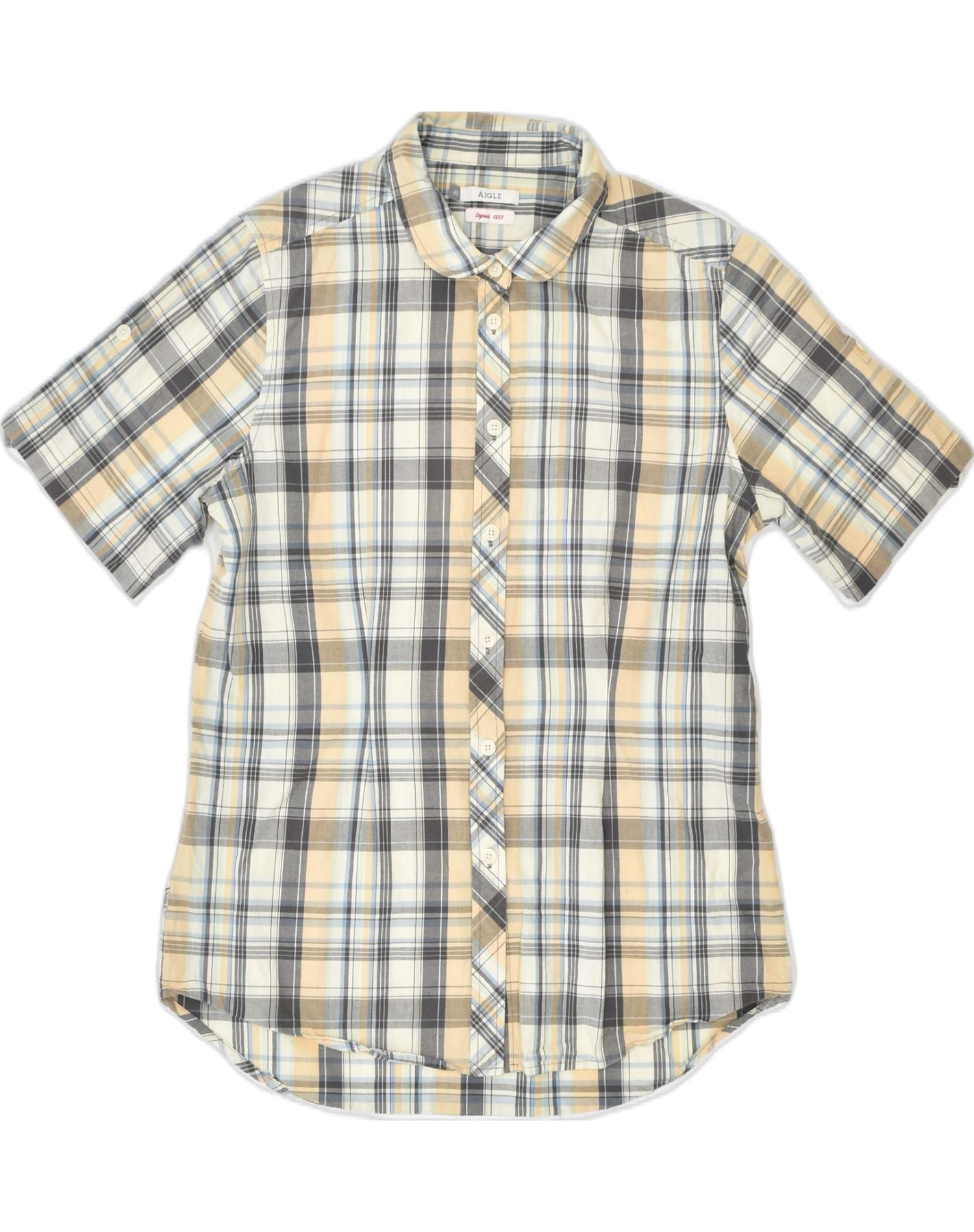 Cămașă cu mânecă scurtă pentru bărbați AIGLE Mărimea 40, bumbac carouri, bej mediu