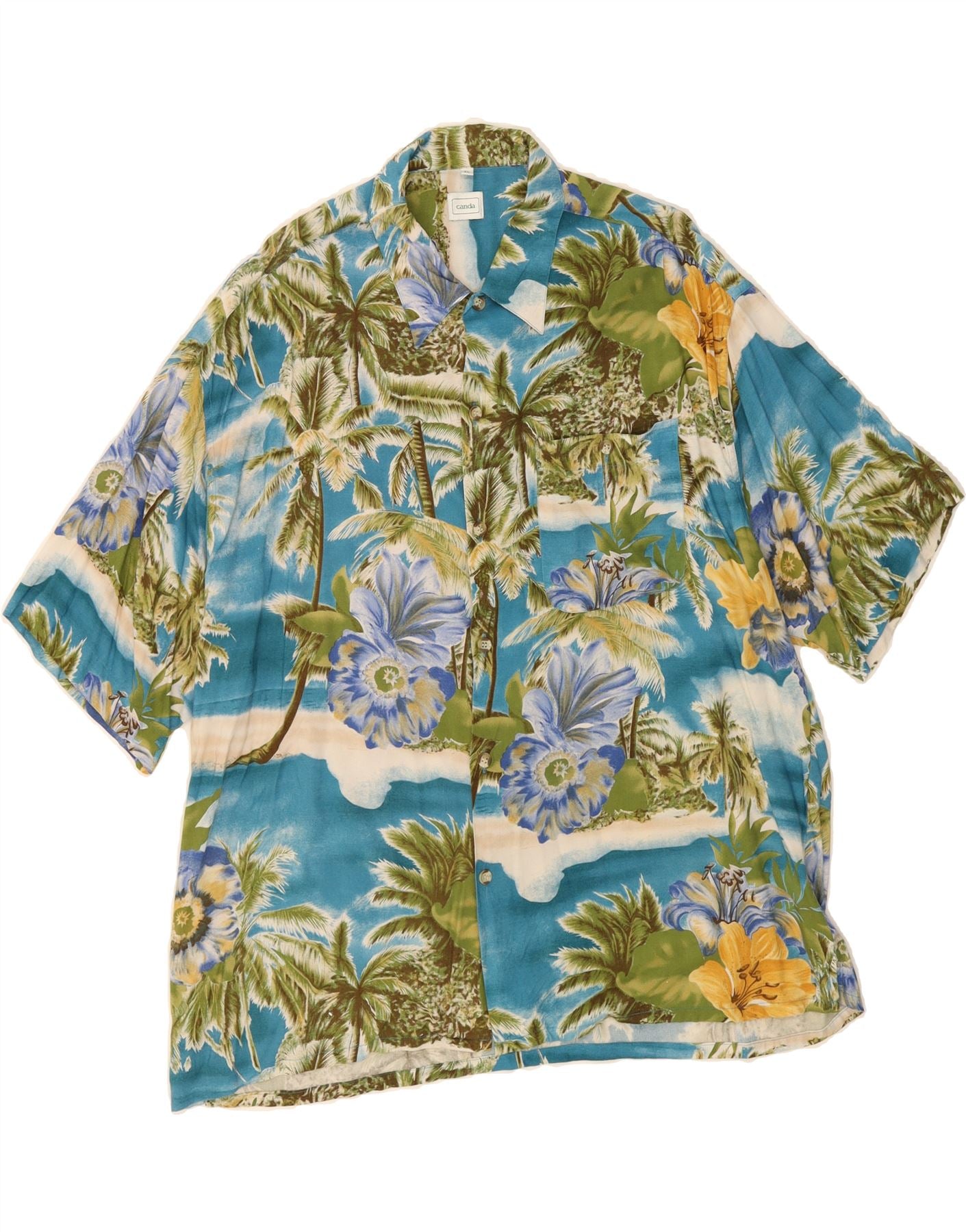 CANDA Mens Graphic Short Sleeve Shirt XL Blue Floral Viscose Hawaiian