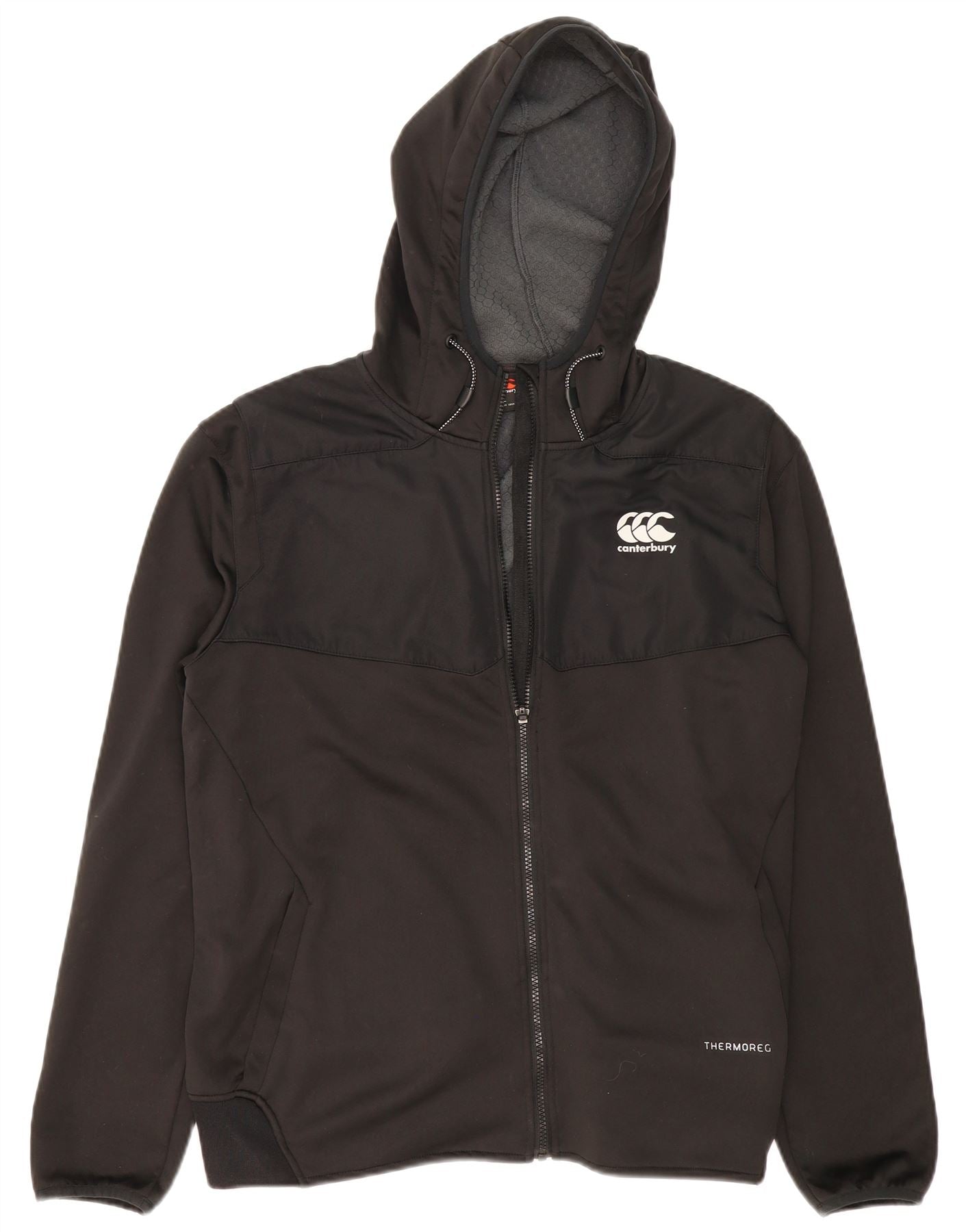 - AI Description: This Canterbury men's Zip Hoodie Sweater is crafted from 100 percent polyester knit for breathable comfort. The black fabric offers a sleek, sporty look. It features a full zip closure and a practical hood for versatile wear. Long sleeves and a regular fit ensure ease of movement. Zipped pockets provide secure storage. A subtle logo accent completes this athletic design, perfect for rugby enthusiasts.